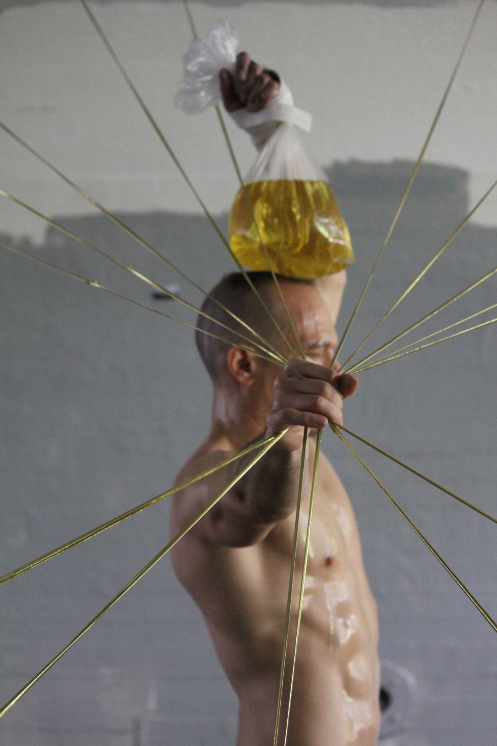 El pasado 01 de octubre, Mahaluf presentó los resultados de su exploración artística de estructuras elásticas. La idea, explica el artista, es “atar un jarrón de cerámica como objeto simbólico de la cultura china a una de las estructuras del techo y por otro extremo atado a mi cuerpo. Voy a avanzar lentamente como una conversación entre el objeto, el espacio y mi cuerpo. El objeto quedará colgado del espacio y de mi cuerpo. Luego voy a empezar a cortar cada elástico hasta que caiga el objeto”.