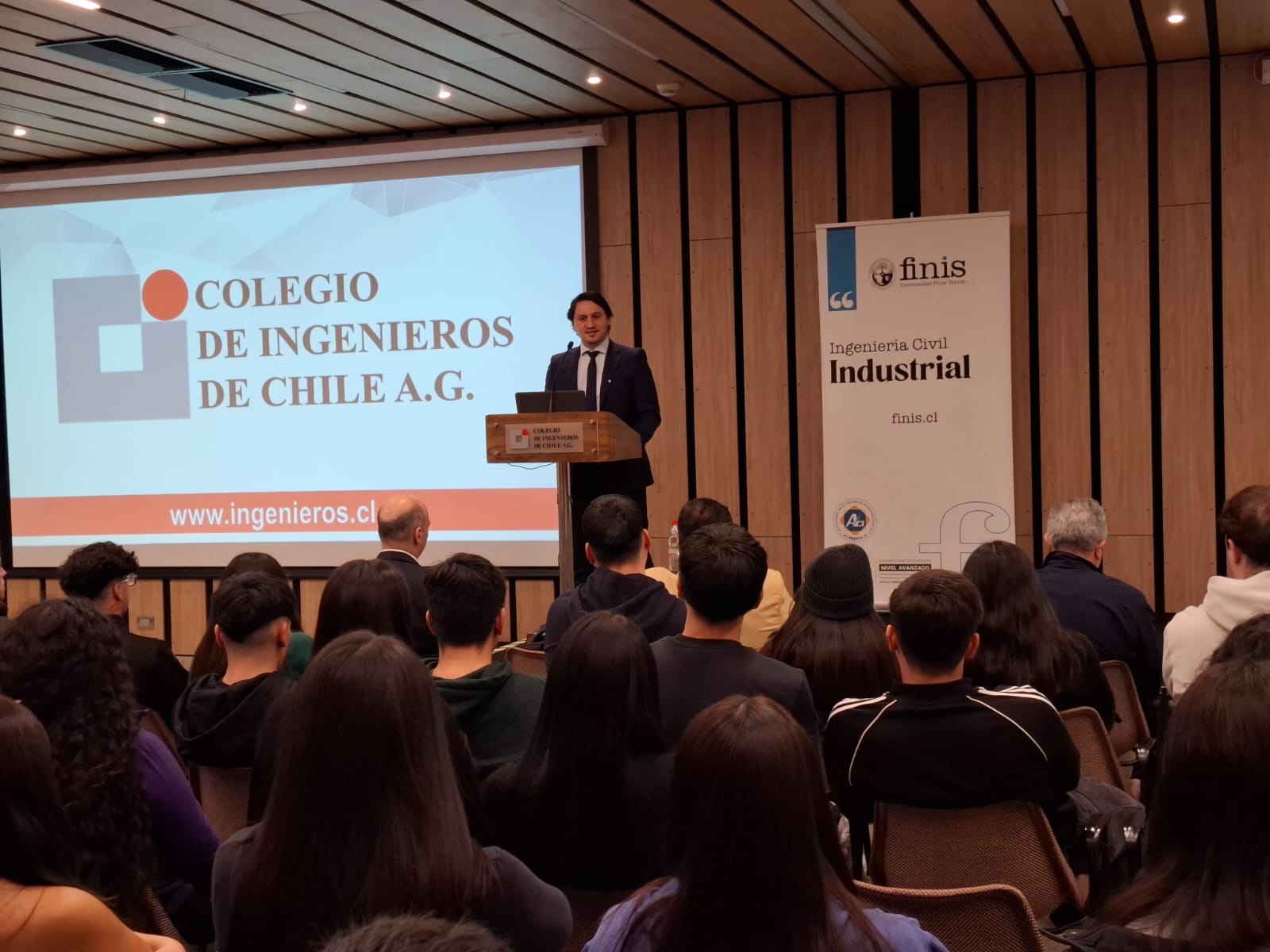 El Consejo de la Especialidad Industrial del Colegio de Ingenieros de Chile recibió este viernes a los nuevos estudiantes de Ingeniería Civil Industrial de la Universidad Finis Terrae en una ceremonia de bienvenida que tuvo lugar en las dependencias del colegio. Durante la jornada, los asistentes pudieron participar en la charla “Desafíos futuros en Ingeniería Industrial”, impartida por el ingeniero civil industrial Bartolomé Rodillo, experto en el sector TI y modelos de negocio.