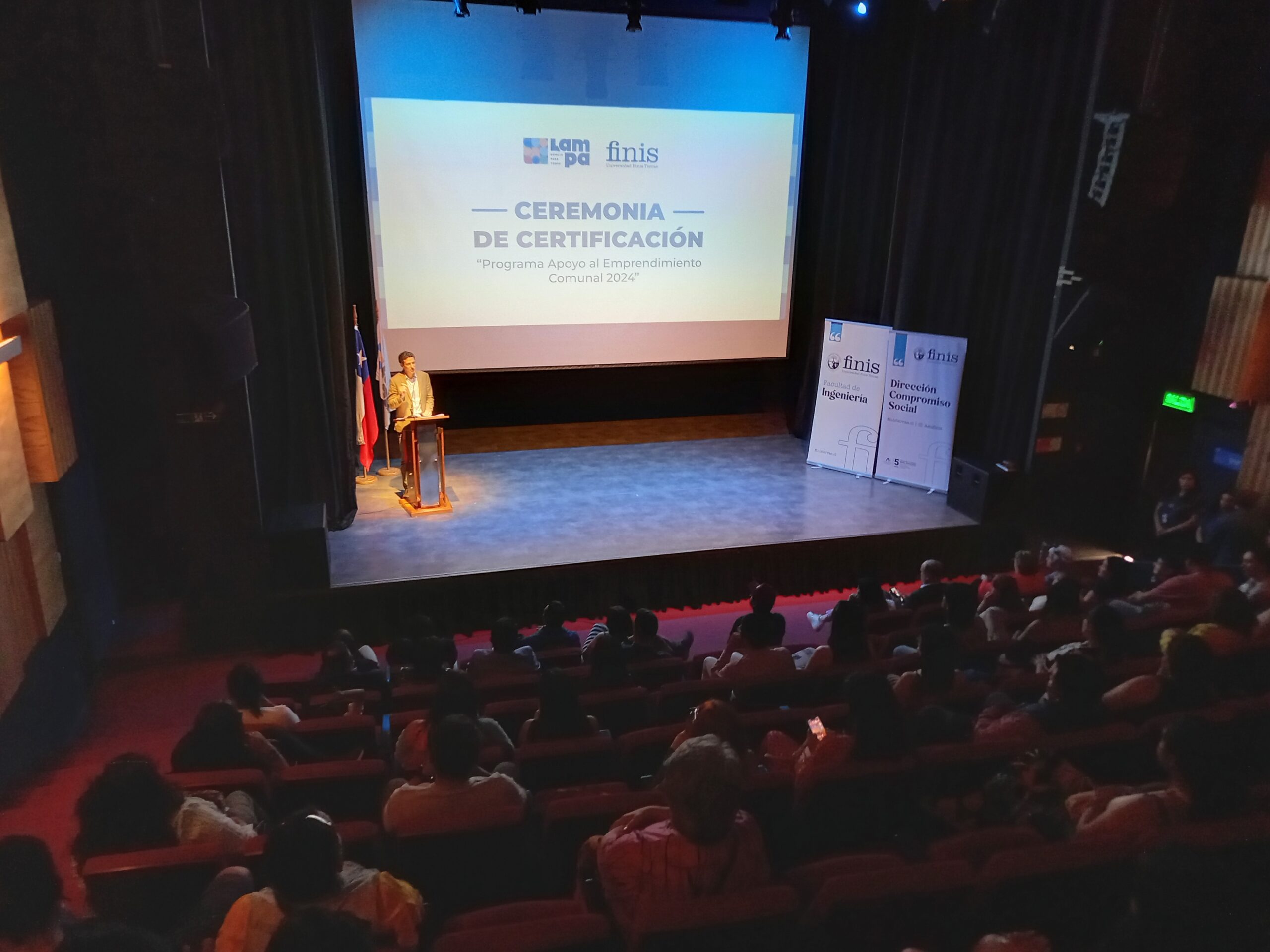 Así como Francisco, fueron más de medio centenar de emprendedores y emprendedoras los que llegaron hasta el Teatro Municipal de Lampa, muchos acompañados por sus familiares, para recibir su certificación por haber sido parte del programa “Apoyo al emprendimiento comunal”, una iniciativa organizada por la municipalidad local, la Facultad de Ingeniería y la Dirección de Compromiso Social de la Universidad Finis Terrae. El proyecto tuvo como objetivo principal capacitar a emprendedores de la comuna para mejorar su capacidad de acceder a fondos públicos y fortalecer sus negocios.