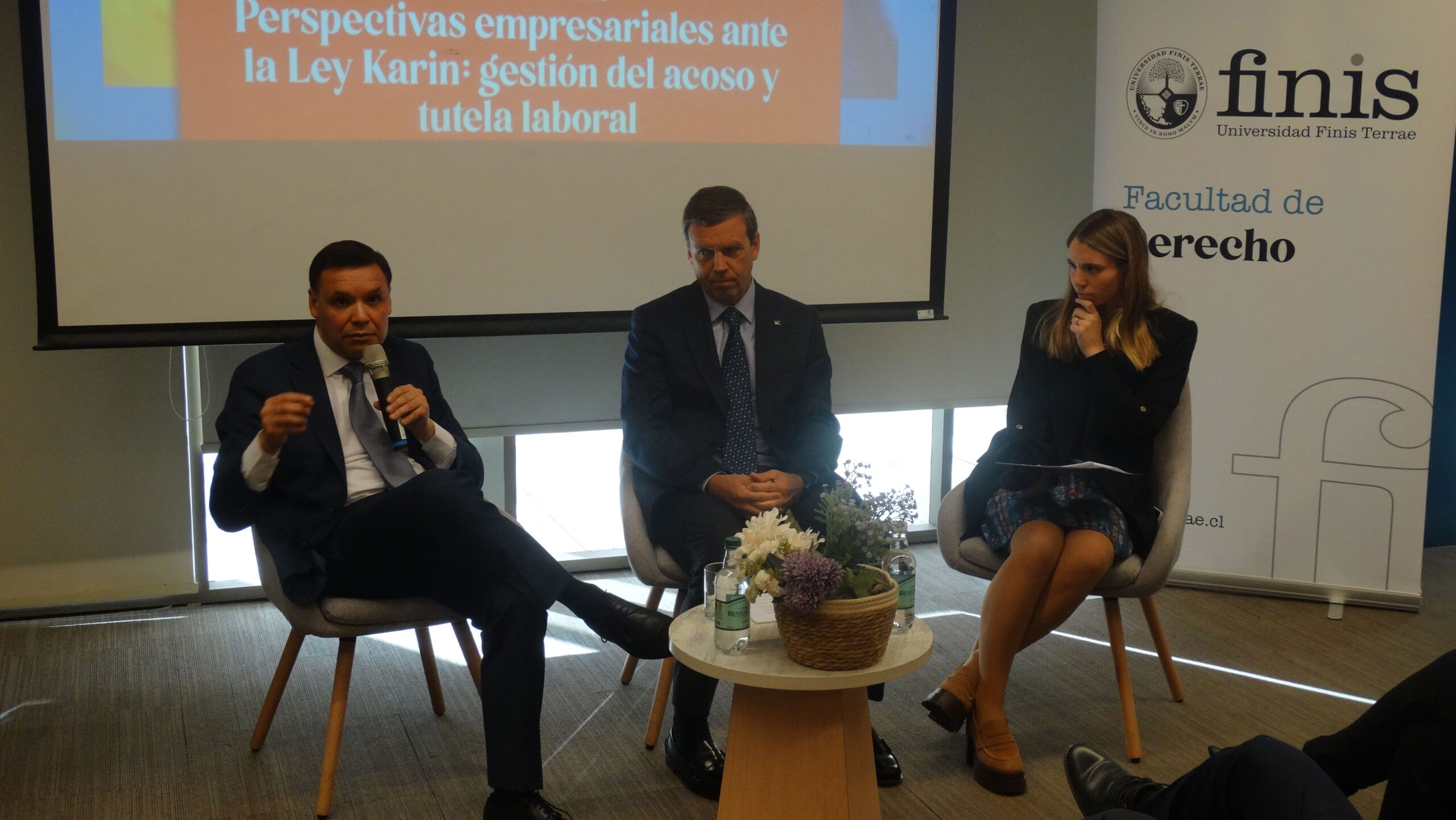 Con el fin de que empresarios y trabajadores pudieran resolver sus dudas en torno a la entrada en vigencia de la llamada Ley Karin, la Facultad de Derecho de la U. Finis Terrae organizó el conversatorio Perspectivas empresariales ante la Ley Karin: gestión del acoso y tutela laboral.
