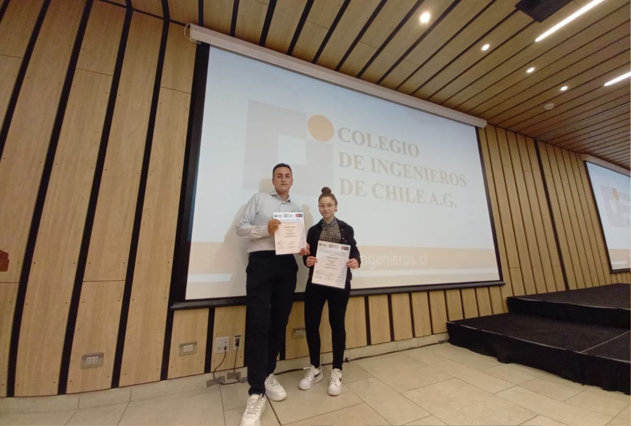 En la ceremonia de premiación, realizada en el Auditorio del Colegio de Ingenieros de Chile, participaron el presidente del Consejo de Especialidad Industrial de la señalada asociación gremial, Rodrigo Escudero y la decana de la Facultad de Ingeniería de la Universidad Finis Terrae, Dra. Angélica Urrutia, además de otros invitados de las instituciones participantes.
