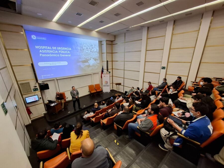El pasado miércoles, un grupo de estudiantes y académicos de la Escuela de Ingeniería Civil Informática y Telecomunicaciones de la Universidad Finis Terrae visitó el Hospital de Urgencia Asistencia Pública (HUAP), ex Posta Central, para dar inicio a la Medición Intermedia de Competencias (MIC 2025). La actividad contó con la presencia del director de escuela, Jorge Bozo, y fue recibida por el director del HUAP, Patricio Barría.