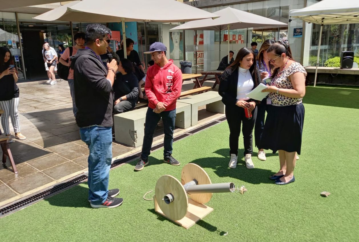 “Lo que se evaluaba -principalmente- es que los alumnos pudieran realizar o poner en práctica lo aprendido durante el curso, que básicamente se centraba en el desarrollo de una catapulta o lanzamiento de proyectiles, mediante un dispositivo a escala mayor”, explicó el académico.