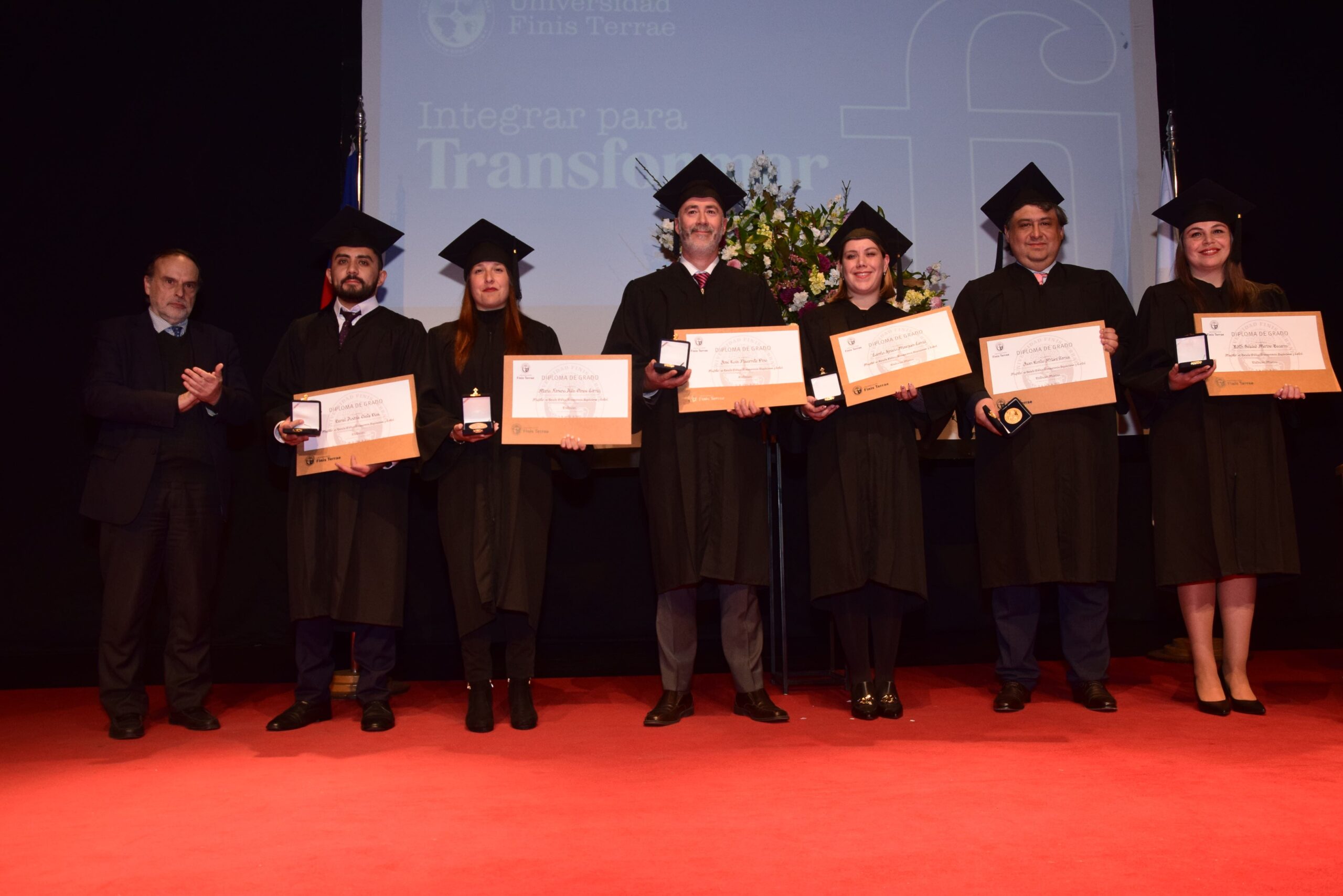Con la presencia del rector de la Universidad Finis Terrae, Dr. Cristian Nazer, el decano de la Facultad de Derecho, Dr. Ignacio Covarrubias, el director de postgrados de nuestra Facultad, Dr. Alejandro Leiva, el director académico del Magíster en Derecho Público, Enrique Navarro, la coordinadora académica de dicho programa, Dra. Nancy Barra, el director del Diplomado de Gestión del Riesgo de Desastres en Chile, Bernardo Salas, el director académico del Magíster en Derecho de los Recursos Naturales y Medio Ambiente, Pedro Lagos y su coordinadora, Dra. Karla Quintero-Bonilla, se realizó la entrega de los diplomas a los titulados de nuestros programas de postgrados 2024.