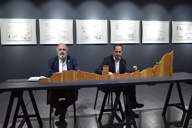Marco Antonio de la Parra, director de la cátedra, fue el encargado de conversar con el destacado arquitecto, quien durante su presentación explicó en detalle su obra.