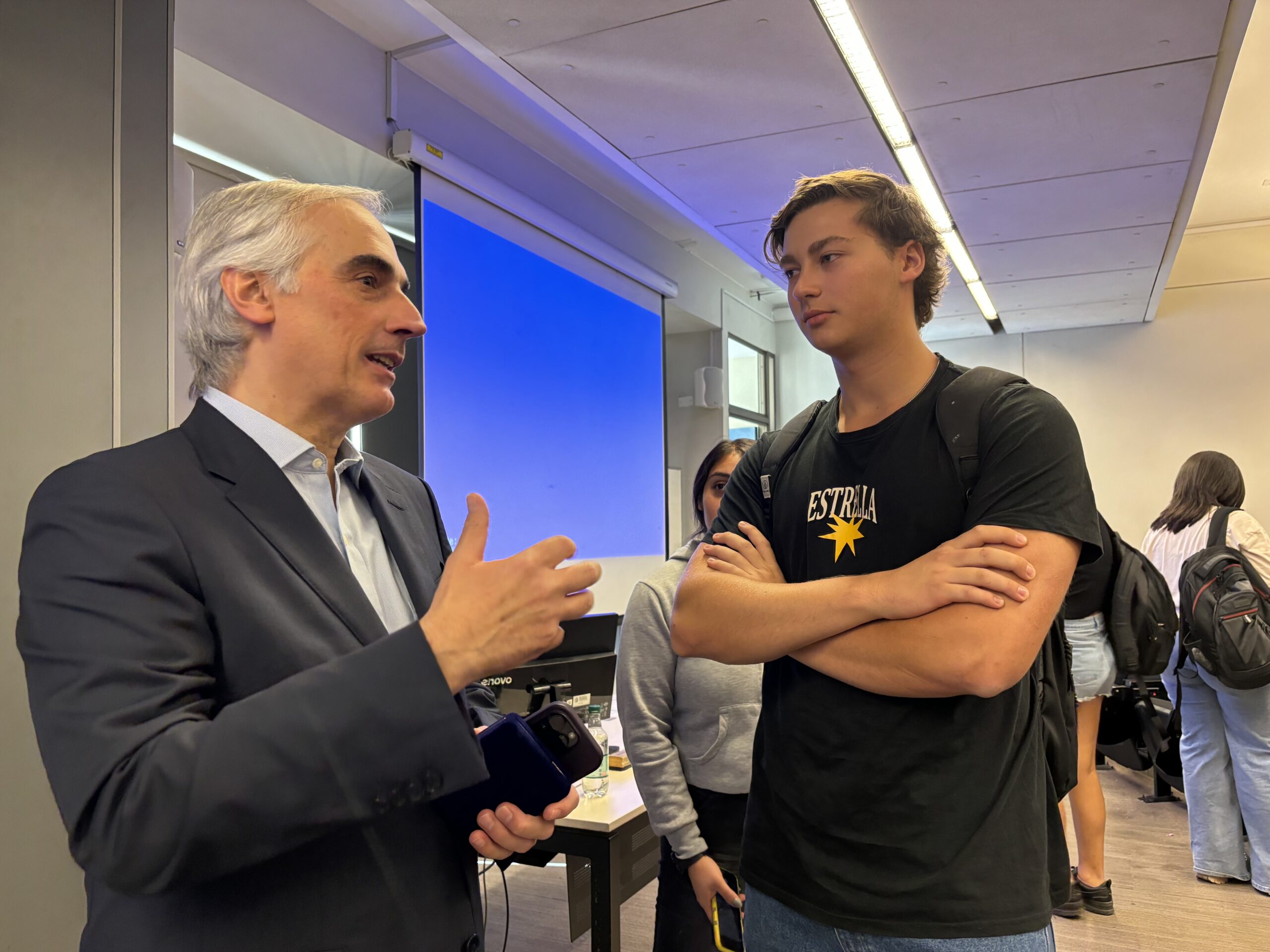 “Es muy importante juntar el mundo de la academia con el de la empresa (…) Es bueno hablarle a la gente joven, transmitir la experiencia que tenemos, los dolores, los problemas, los sueños. Todo lo que sea relacionar mundos distintos le hace muy bien al país”, señaló Navarro sobre su disposición de conversar con los alumnos y alumnas de la institución.