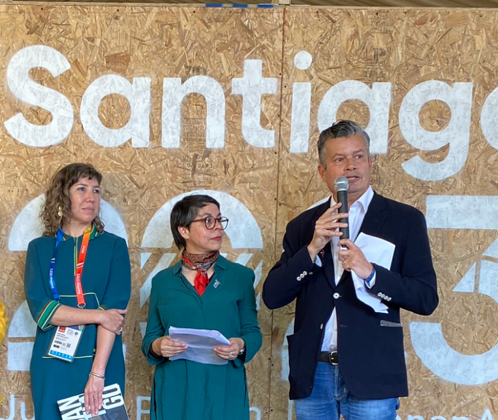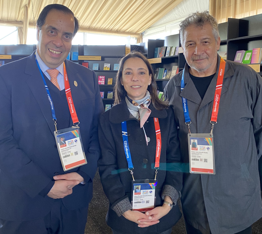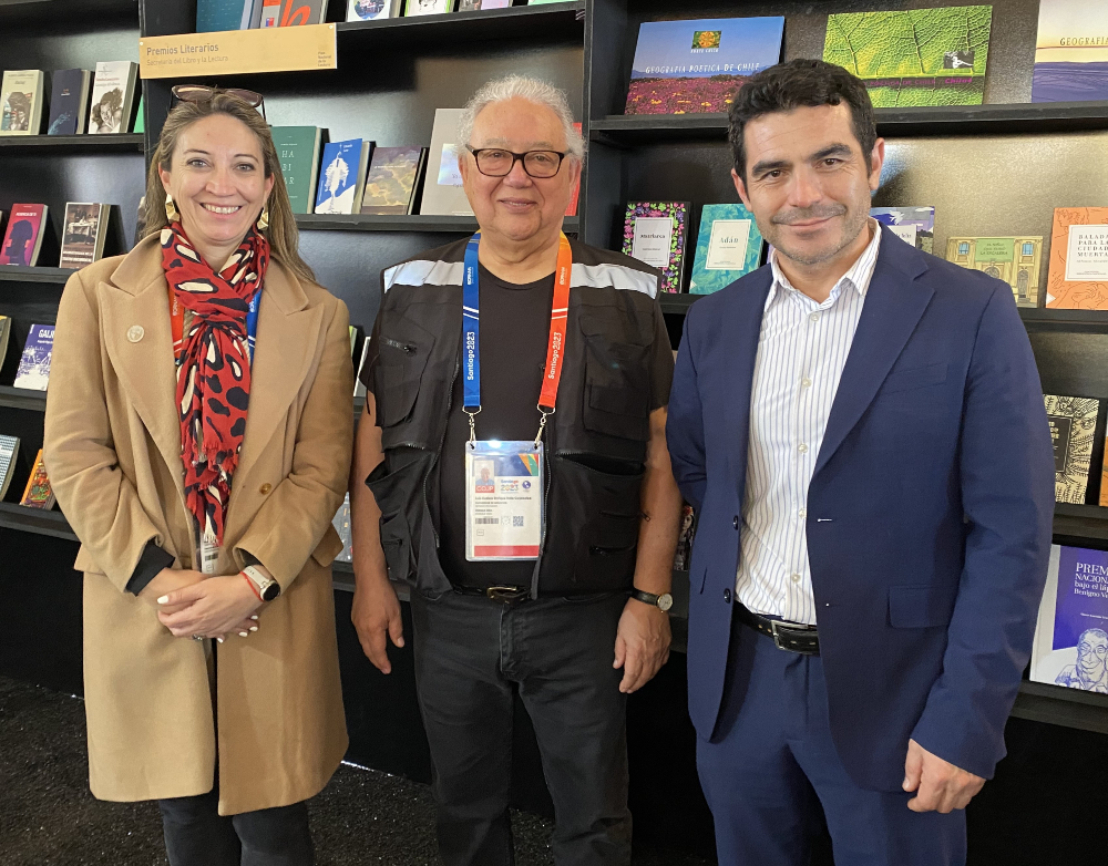- Antonia Illanes, subsecretaria del Deporte; Ana Mora, seremi de las Culturas, las Artes y el Patrimonio de la Región Metropolitana, y Felipe Bianchi, director de Comunicaciones de Santiago 2023.