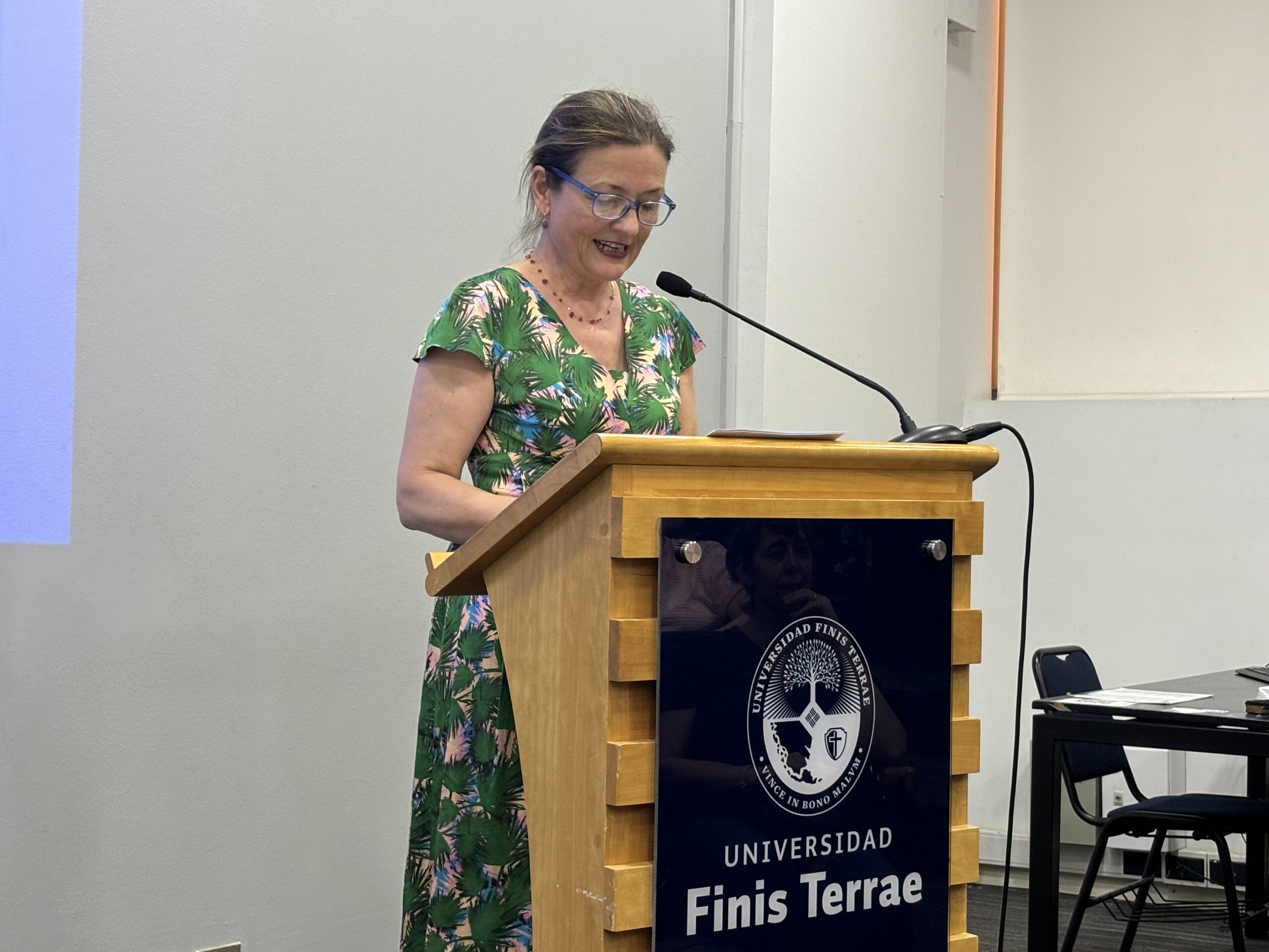 Tras la exposición de la embajadora, el director del Observatorio de Asuntos Internacionales de la Universidad Finis Terrae, Alberto Rojas, realizó una breve entrevista a la diplomática. El encuentro finalizó con preguntas del público.