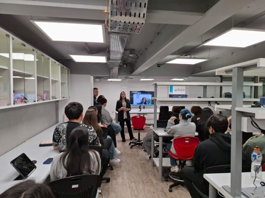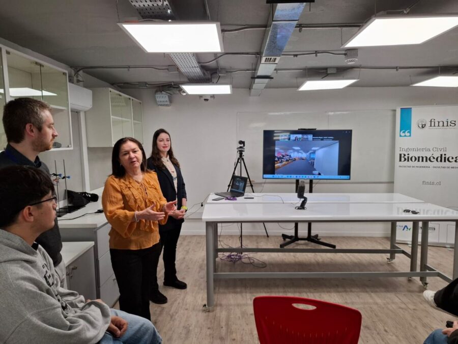 Por su parte, la directora de Relaciones Internacionales de la U. Finis Terrae, Daniela Montenegro, subrayó la importancia de que los estudiantes se vinculen tempranamente con experiencias internacionales. “Es muy significativo comenzar con Ingeniería Civil Biomédica, que integra todo el currículum de Finis Transforma. Nuestros alumnos, desde primer año, están viviendo la internacionalización en casa, mediante charlas, COIL y redes que los preparan para futuros intercambios”.