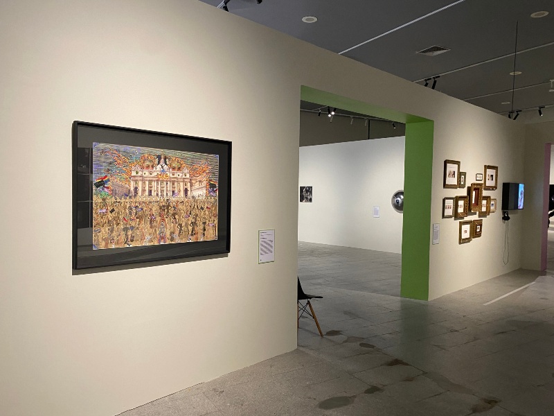 La exposición “Al unísono” reúne 40 obras escogidas entre más de 600 postulaciones de artistas nacionales y extranjeros residentes en Chile, de entre 20 y 35 años. La muestra presenta una diversidad de técnicas y temáticas que abordan desde la memoria y el cuerpo, hasta los diálogos culturales, la ciudad, y los conflictos identitarios contemporáneos.