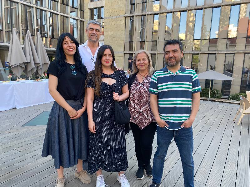 - Catalina de la Fuente, Macarena Rojas, Mary Rogers, Álvaro Larco y Antonio López, egresados del Taller Literario 2023.