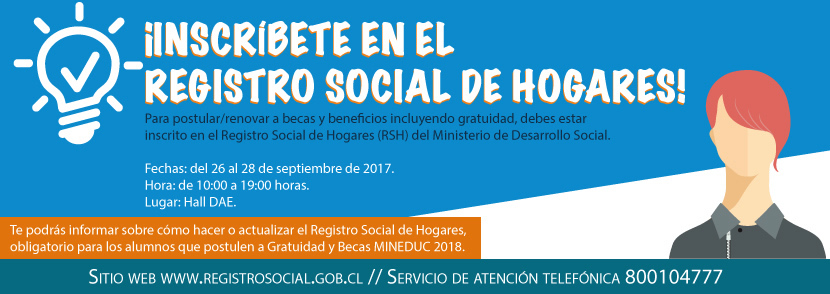 Te podrás informar sobre cómo hacer o actualizar el Registro Social de Hogares, obligatorio para los alumnos que postulen a Gratuidad y Becas MINEDUC 2018.