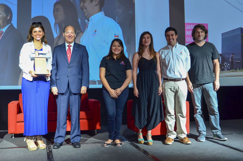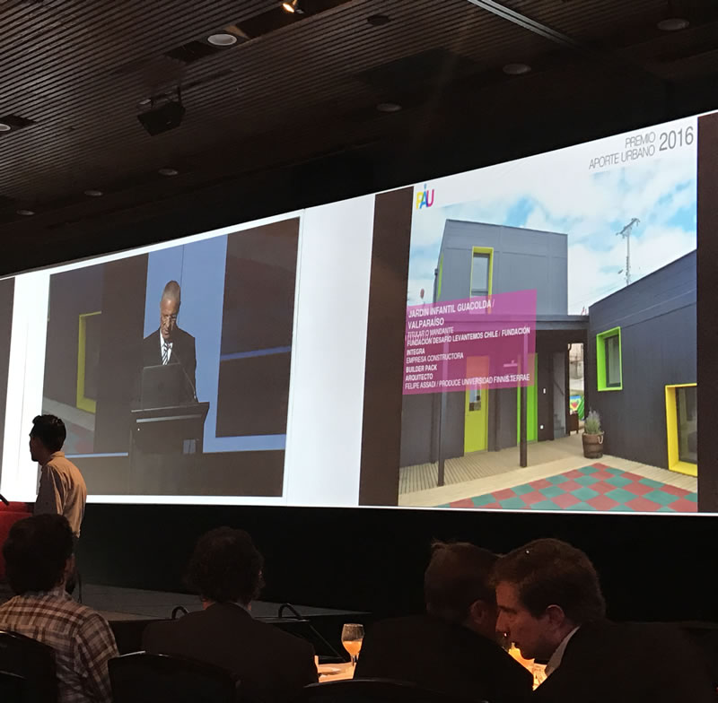 La Cámara Chilena de la Construcción, junto a la AOA y el Colegio de Arquitectos, entregaron el pasado 14 de diciembre los Premios Aporte Urbano. Y el Jardín infantil Guacolda de Valparaíso, reconstruido por Desafío Levantemos Chile, las fundaciones Integra y Mi Parque, Builderpack, la Mutual de Seguridad y diseñado por Produce de la Facultad de Arquitectura y Diseño de la U. Finis Terrae, obtuvo el Premio en la categoría Infraestructura y Equipamiento.