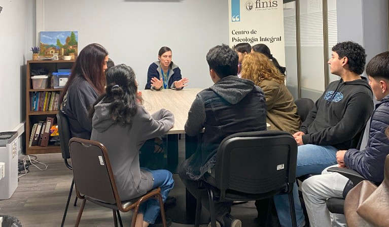 Luego, los estudiantes vivieron un recorrido por el Centro de Psicología Integral de la Persona, guiado por Christian Schnake, director del centro. Luego experimentaron una sesión clínica simulada en sala espejo, para después comentar y analizar lo vivido. Finalmente, pudieron disfrutar de una clase “casi” real con la docente Josefina Cañas impartió un taller experiencial de “Regulación emocional y manejo del estrés”.