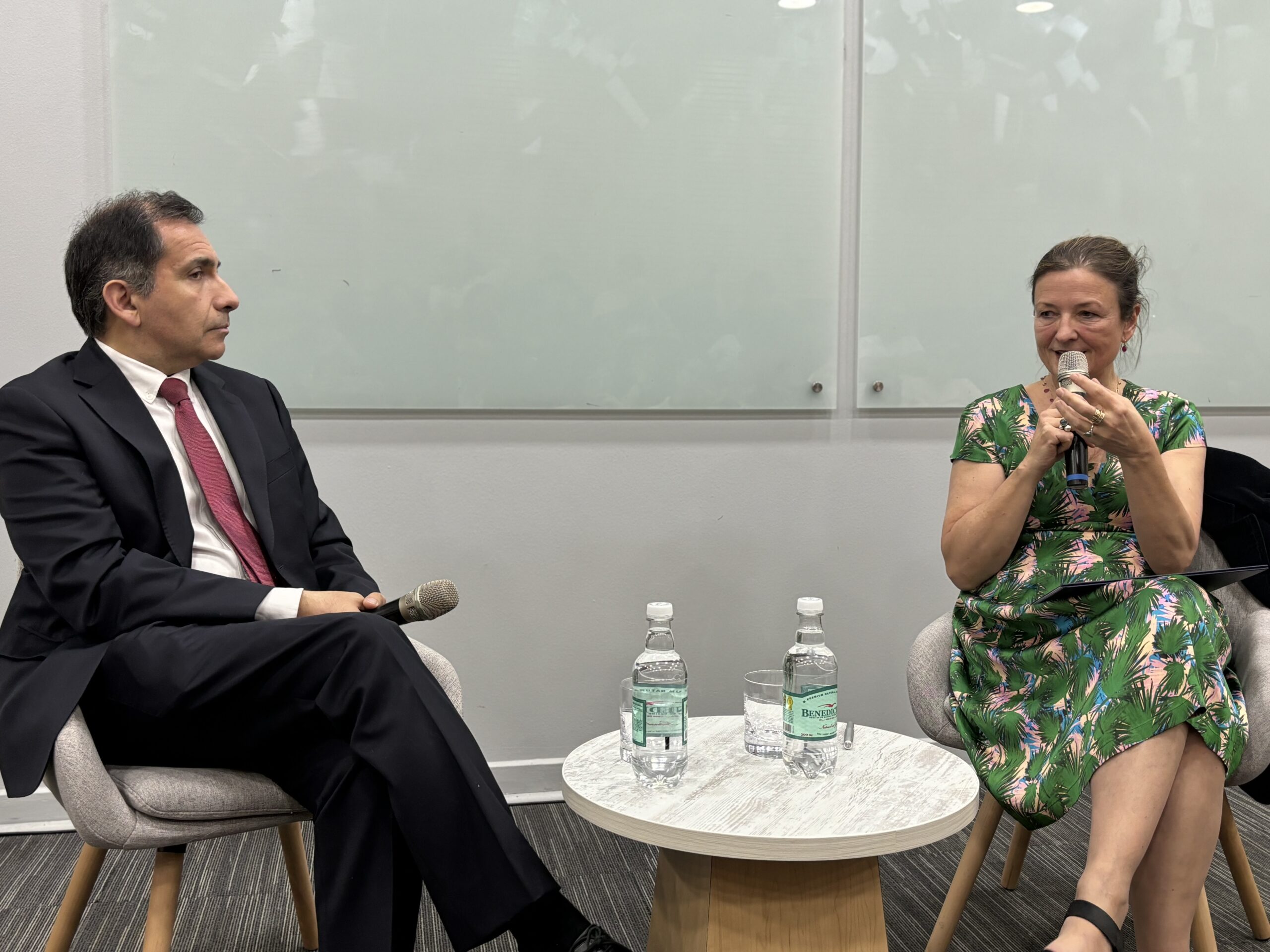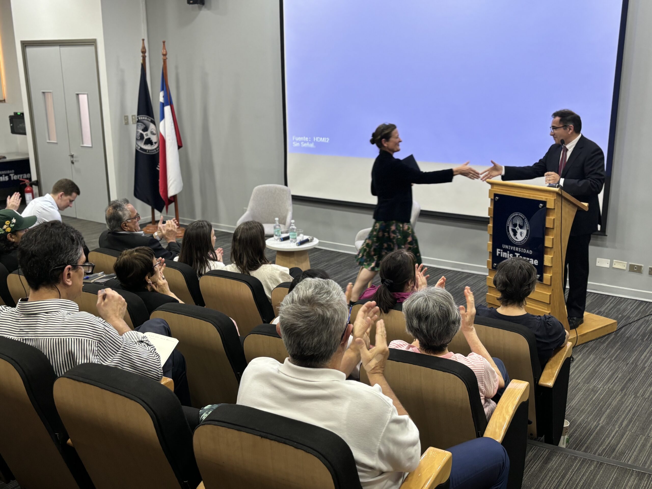 Tras la exposición de la embajadora, el director del Observatorio de Asuntos Internacionales de la Universidad Finis Terrae, Alberto Rojas, realizó una breve entrevista a la diplomática. El encuentro finalizó con preguntas del público.