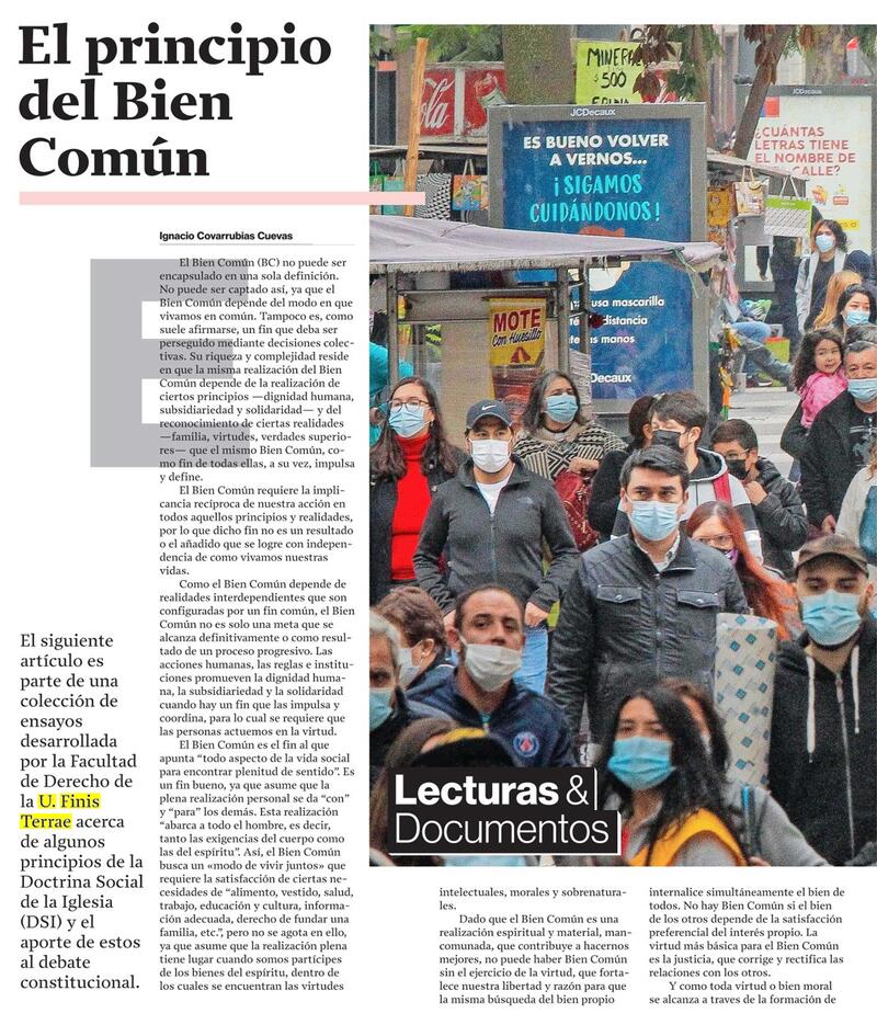 La Segunda | Publican ensayo sobre Bien Común del decano Ignacio Covarrubias, parte del trabajo de la facultad sobre el aporte al debate constitucional de los principios de la Doctrina Social de la Iglesia