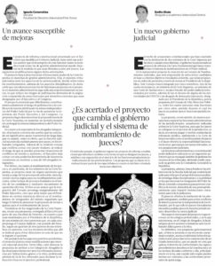Asimismo, el profesor Covarrubias concluyó que “sin perjuicio de los aspectos positivos ya referidos, el Proyecto plantea otras modificaciones que merecen especial atención. Entre ellas, cabe destacar la propuesta de atribuir a los Colegios de Abogados la facultad para interponer ante los tribunales denuncias por infracciones graves a la ética profesional, además de la de los tribunales para declarar la infracción ética en el ejercicio profesional”.