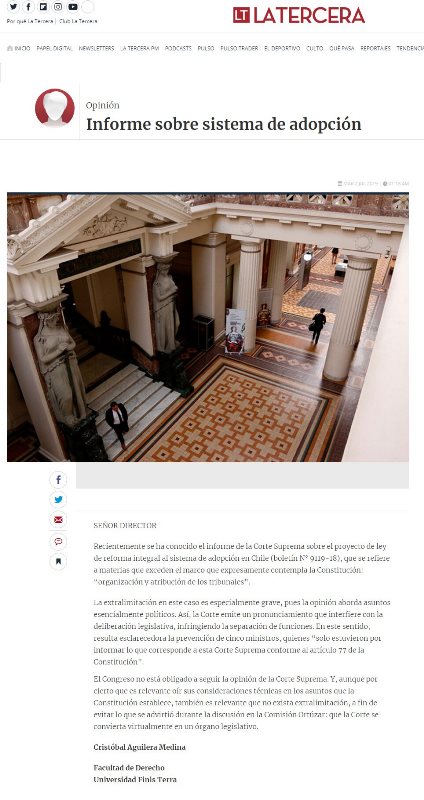 El abogado Cristóbal Aguilera, académico e investigador de la Facutad de Derecho de la Universidad Finis se refirió en el blog de opinión “Voces” de Diario La Tercera, acerca del informe que la Corte Suprema emitió sobre el proyecto de ley de reforma integral al sistema de adopción en Chile.