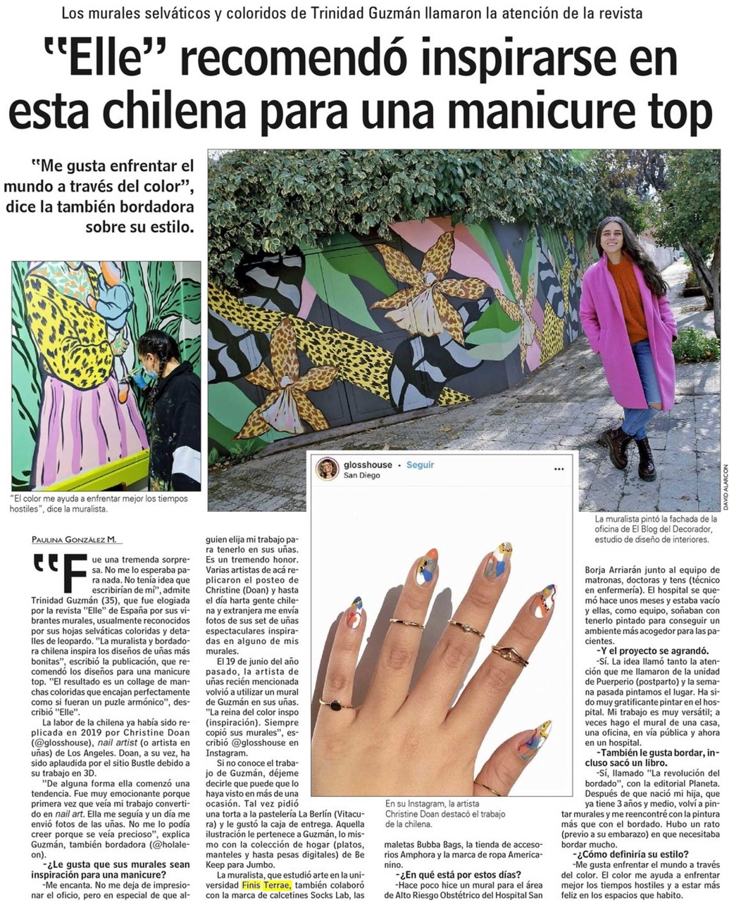 Diario Las Últimas Noticias, destacó a la muralista y egresada de la Escuela de Artes Finis Terrae, Trinidad Guzmán, por el reportaje que escribió la revista “Elle” de España por sus vibrantes murales replicados por distintos artistas de uñas en el extranjero.