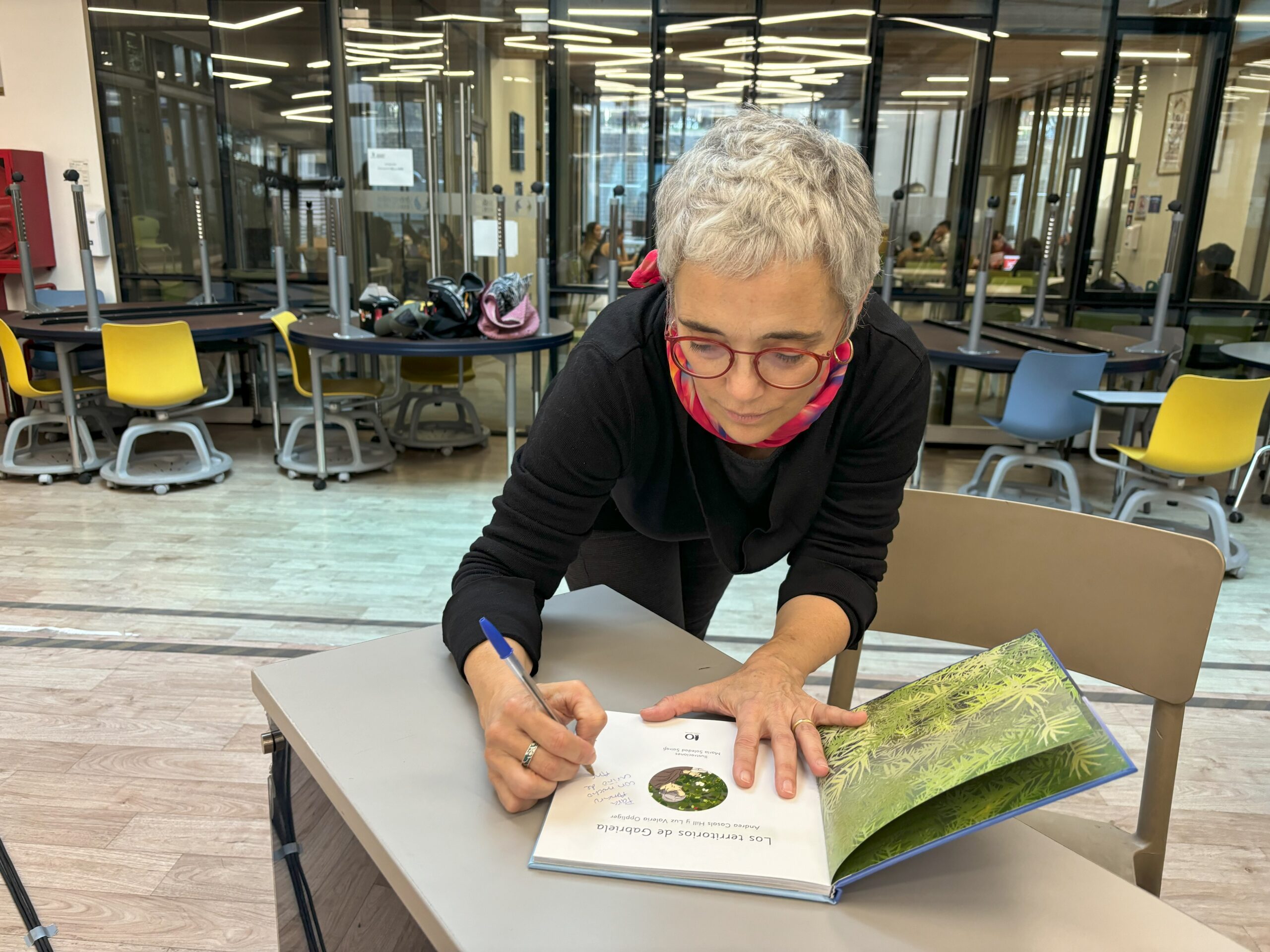 En el conversatorio en torno a Los territorios de Gabriela, Andrea Casals, doctora en Literatura y académica de la Escuela homónima de la Universidad Finis Terrae, relató el proceso que emprendió el equipo formado por Valeria Oppliger, bióloga y doctora en Evolución y Ecología UC, Soledad Sairafi, ilustradora y editora del libro, y la misma profesora Casals, para la incorporación de ocho poemas de Mistral, cada uno con su respectiva explicación ecológica y una propuesta de interpretación poética, en formato libro infantil.
