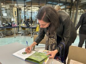 Tras el conversatorio, hubo un sorteo de uno de los ejemplares, y la ganadora fue la alumna de tercer año de Literatura, Yamilet Moya.