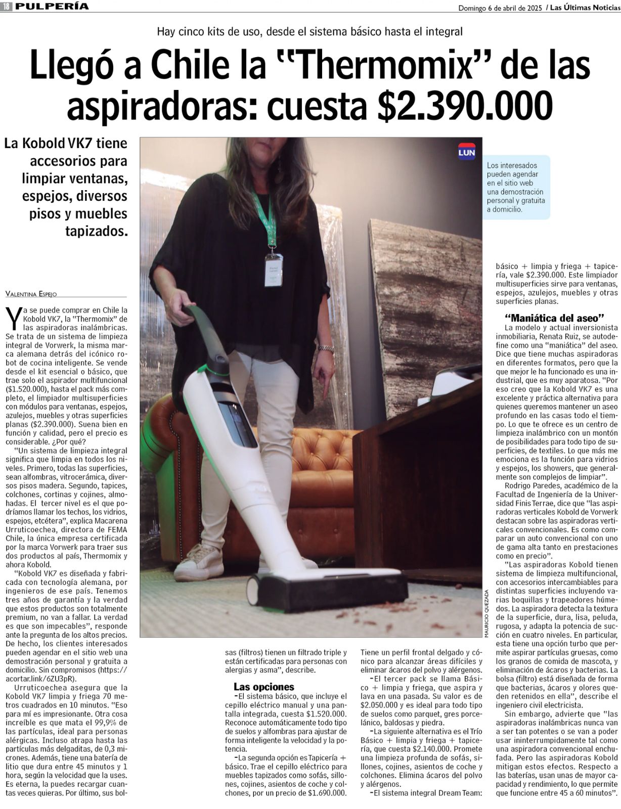 El académico Rodrigo Paredes, comentó sobre la aspiradora que cuenta con tecnología alemana y cuyo kit básico supera el millón y medio de pesos.