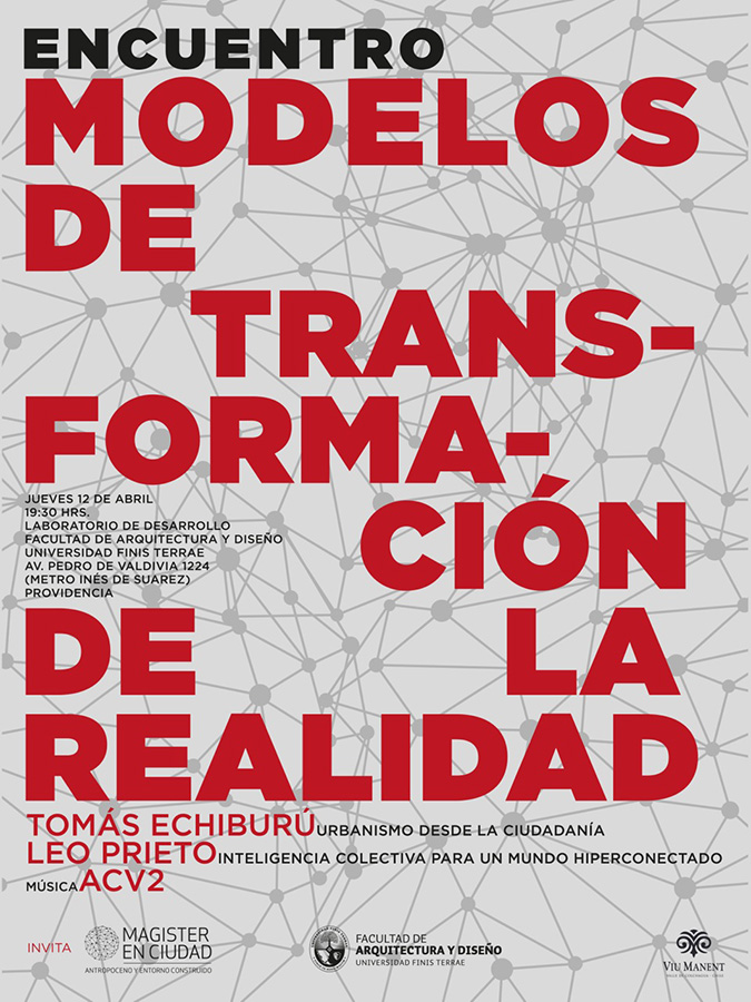 Con dos charlas sobre temas relacionados a modelos que han generado cambios en la sociedad, tanto desde el ámbito del desarrollo urbano como desde la tecnología, la Facultad de Arquitectura y Diseño (FAD) de la Universidad Finis Terrae realizará el próximo jueves 12 de abril a las 19.30 hrs. el Encuentro “Modelos de transformación de la realidad”.
