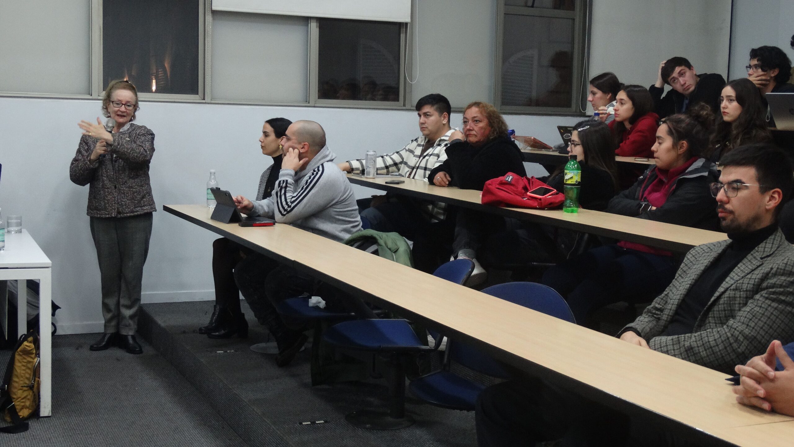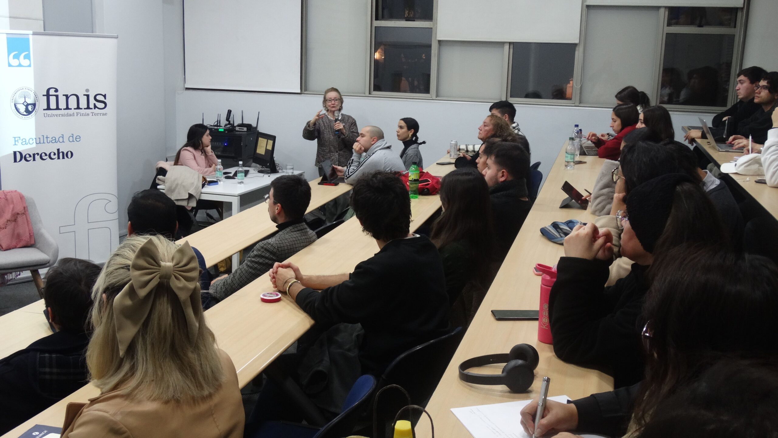 Luego de su exposición, las preguntas de los alumnos apuntaron a conflictos internacionales recientes, como la demanda de Sudáfrica contra Israel por sus acciones militares en territorio palestino, y el anuncio de Estados Unidos en relación a aplicar sanciones contra el fiscal de la Corte Penal Internacional que anunció, en 2020, que investigaría a funcionarios del ejército estadounidense por presuntos crímenes de guerra en Afganistán.
