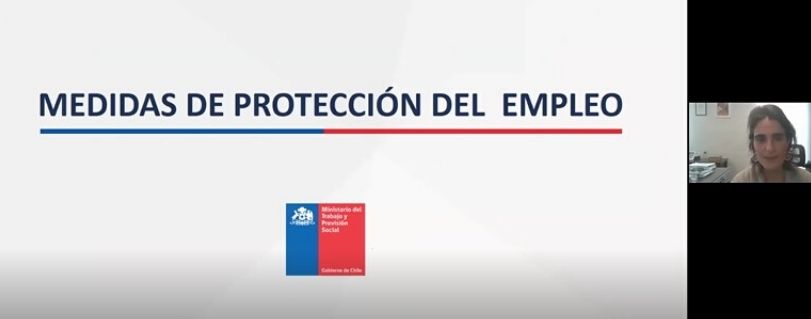 En su presentación, la ministra relevó las principales medidas que adoptó el gobierno para mitigar los efectos de la pandemia, como la Ley de Trabajo a Distancia y Teletrabajo, en vigencia desde el 1 de abril, y la Ley de Protección al Empleo, en vigencia desde el 6 de abril.