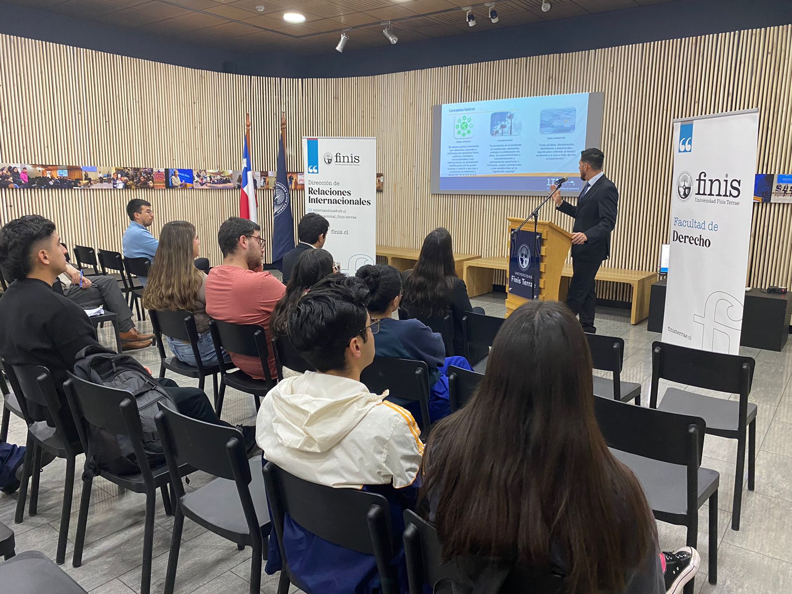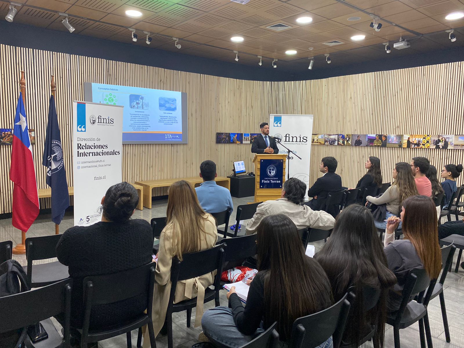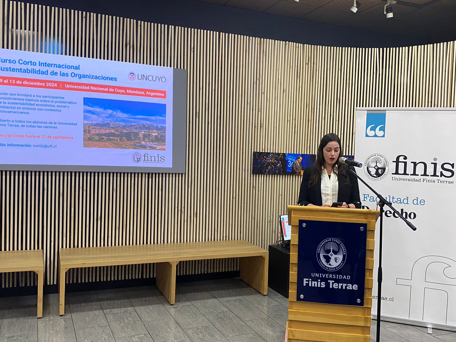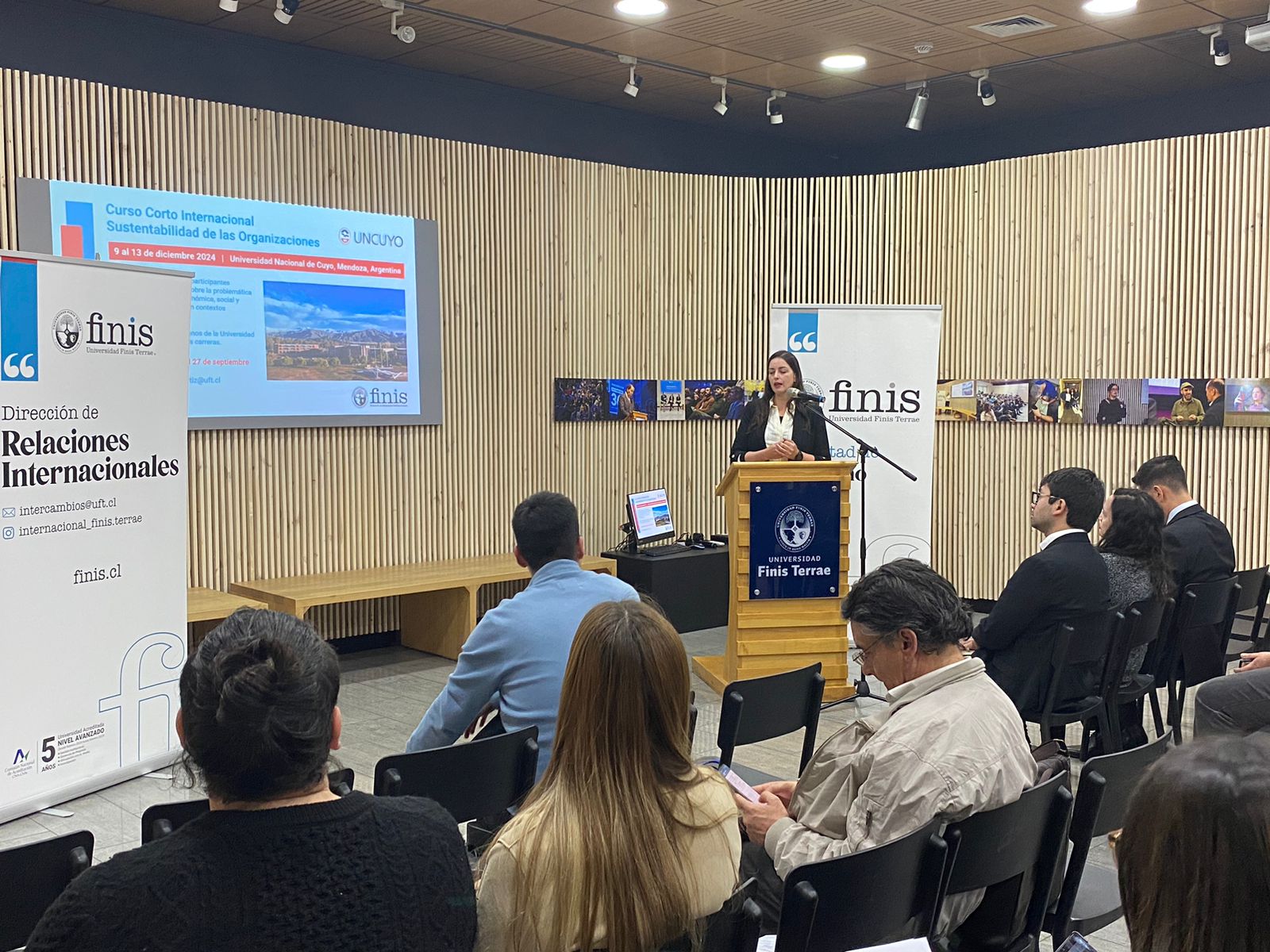 La actividad fue organizada por nuestra Facultad y la Dirección de Relaciones Internacionales de nuestra Universidad con el fin de promover entre nuestros alumnos el curso de sustentabilidad que dicha dirección ha organizado en conjunto con la Universidad de Cuyo (Argentina), el que se realizará del 9 al 13 de diciembre del presente año.