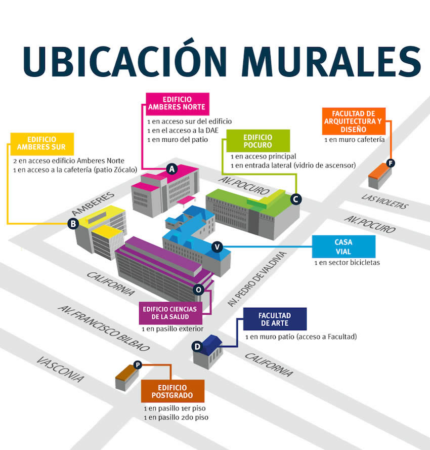 Ubicación de murales por sede.
