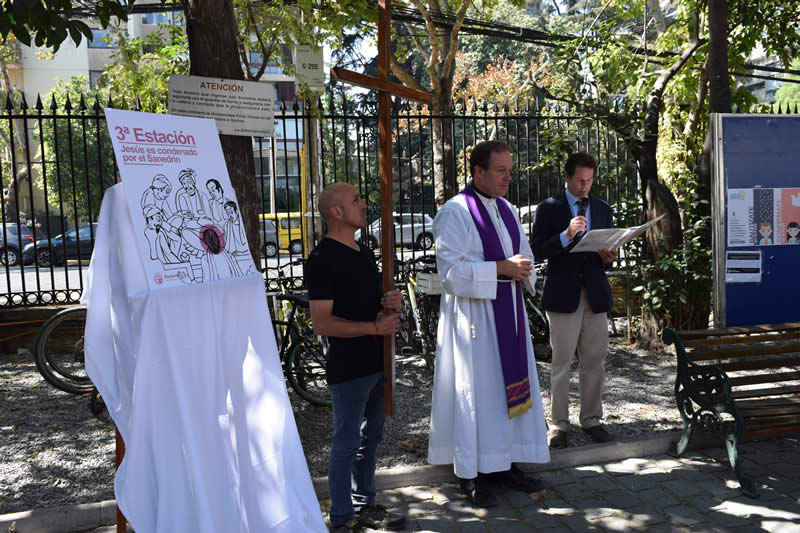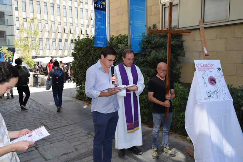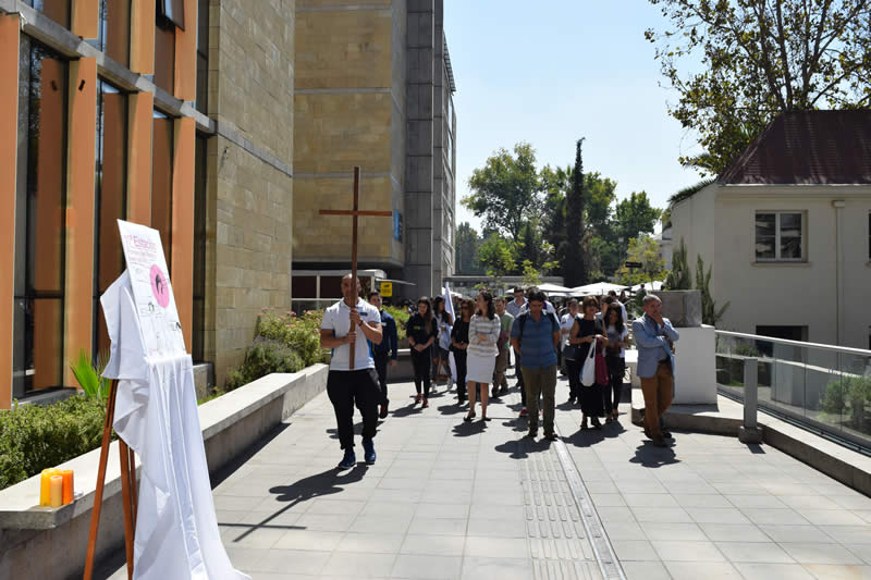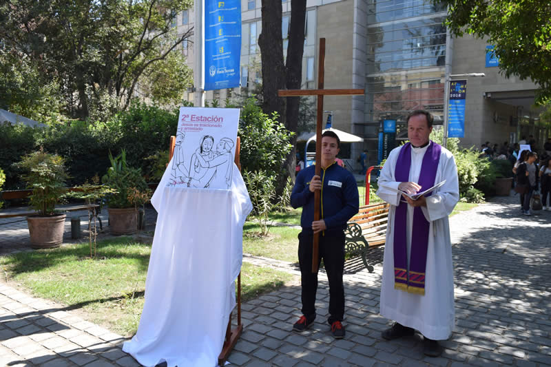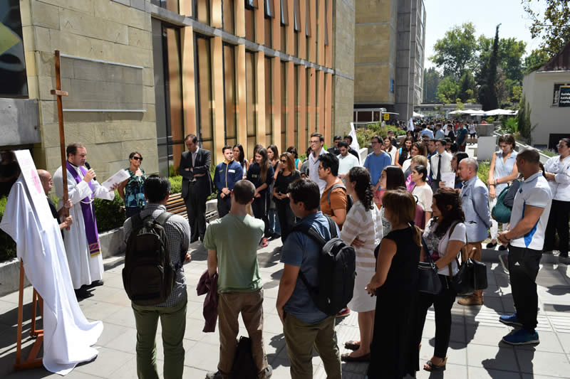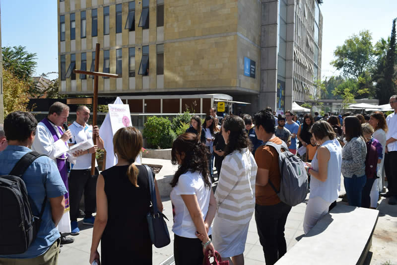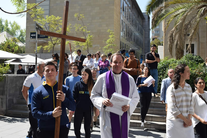 La ceremonia comenzó en el frontis de la Universidad, donde se recorrieron quince estaciones hasta la Capilla Universitaria, y contó con la presencia del rector Cristian Nazer, directores, funcionarios, académicos y alumnos de la Casa de Estudios.
