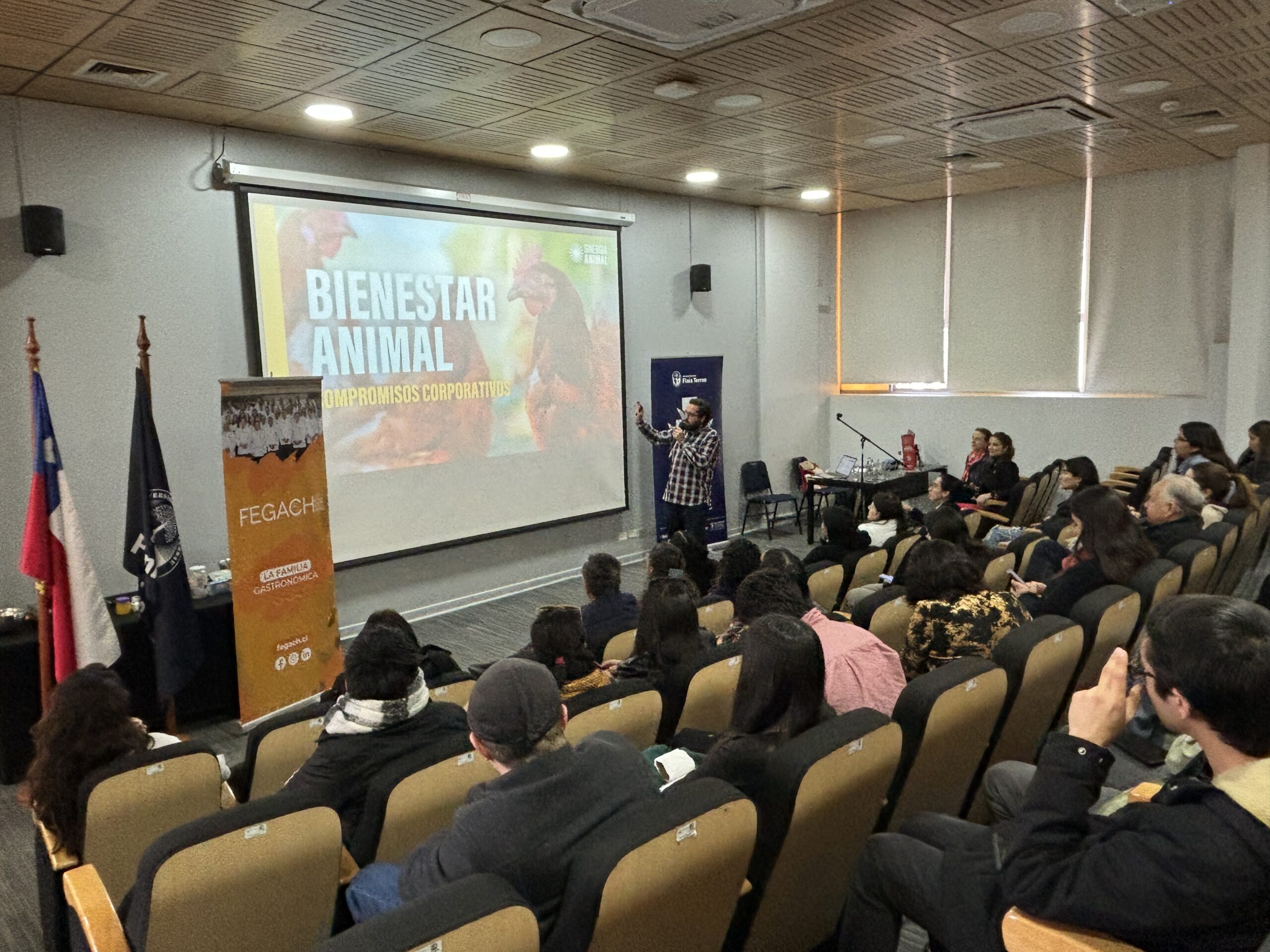 Al finalizar el seminario, la última charla estuvo a cargo de Benjamín Mujica, experto en el bienestar animal, que promueve un trato ético a los seres vivos utilizados para la alimentación de las personas y el veganismo.