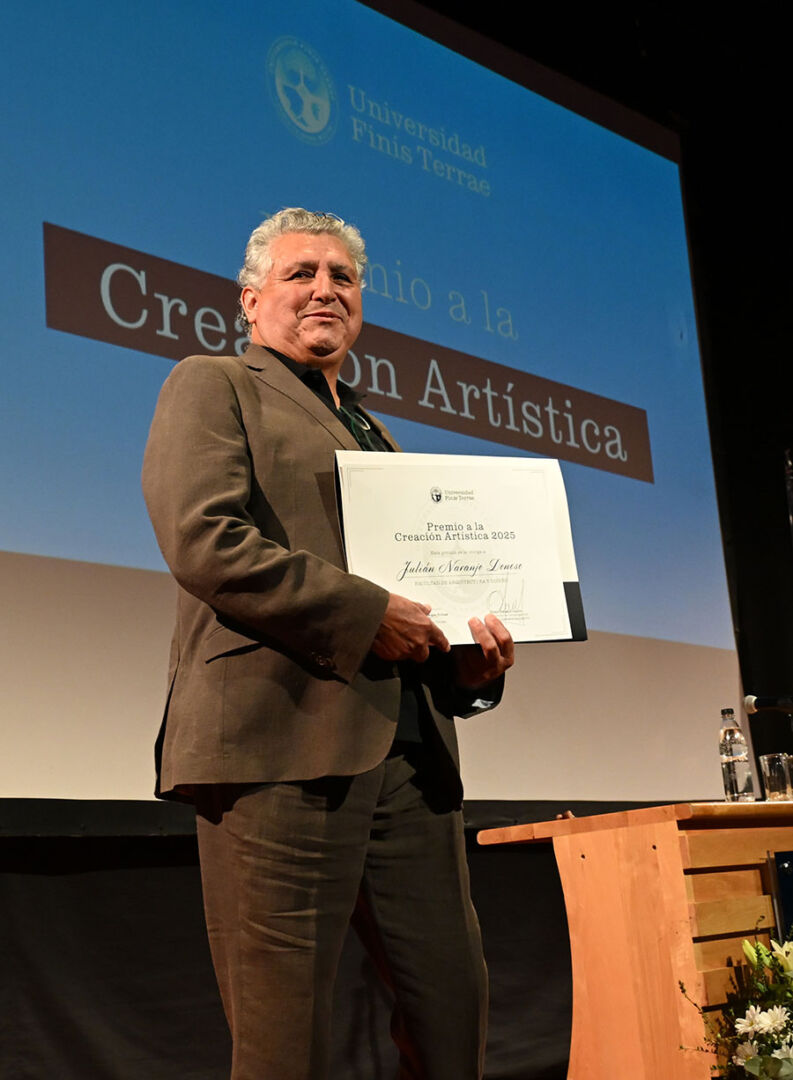 Julián Naranjo, académico de la Facultad de Arquitectura y Diseño, recibió el Premio a la Creación Artística 2025 de la Universidad Finis Terrae. El reconocimiento marca un hito, porque es la primera vez que se entrega a un profesor proveniente del diseño gráfico, ampliando su alcance hacia disciplinas fundamentales para comprender la cultura visual contemporánea.