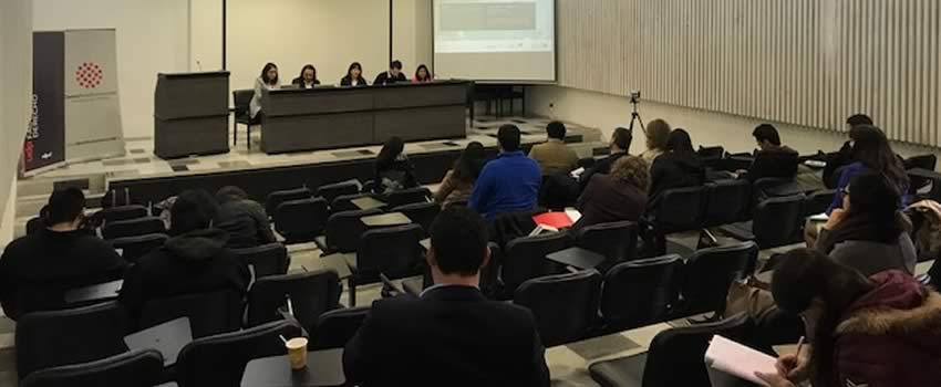 Las Asistentes de Investigación y Estudiantes de la Facultad de Derecho, María Constanza Cubillos y Denisse Hernández expusieron también los resultados de sus respectivas investigaciones. María Constanza realizó una ponencia sobre “Bienes comunes y protección del derecho internacional de un sujeto no humano”, en torno a un caso de habeas corpus a favor de un chimpancé perteneciente al zoológico de Mendoza (Argentina), que ordenó su traslado a la República de Brasil. La ponencia abordó el concepto de bienes comunes del Derecho Internacional y en particular, el de los animales como bienes comunes o “commons”, estableciendo una conexión con el principio de equidad intergeneracional. A su vez, Denisse Hernández abordó el tema de la ley de cuotas en el sistema electoral chileno.