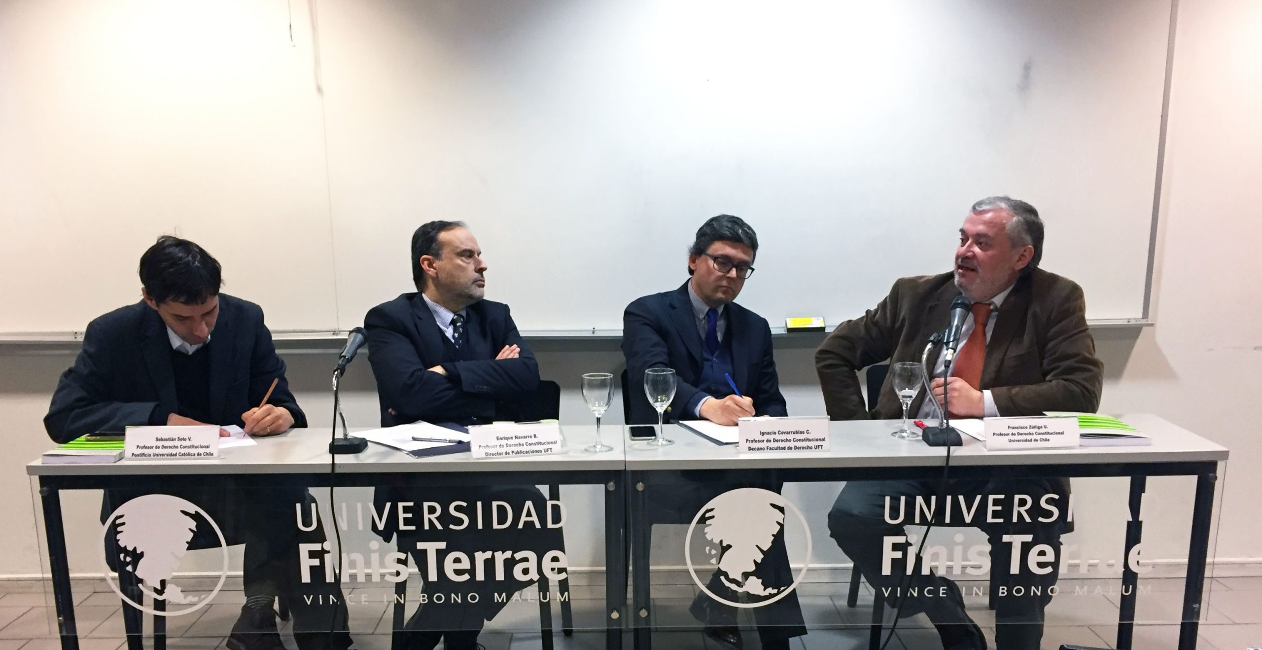 En la ceremonia de lanzamiento de la revista intervinieron el decano de Derecho del plantel, Ignacio Covarrubias; el profesor de Derecho Político y Constitucional de la Universidad de Chile, Francisco Zúñiga y el docente de Derecho Constitucional de la Universidad Católica, Sebastián Soto.