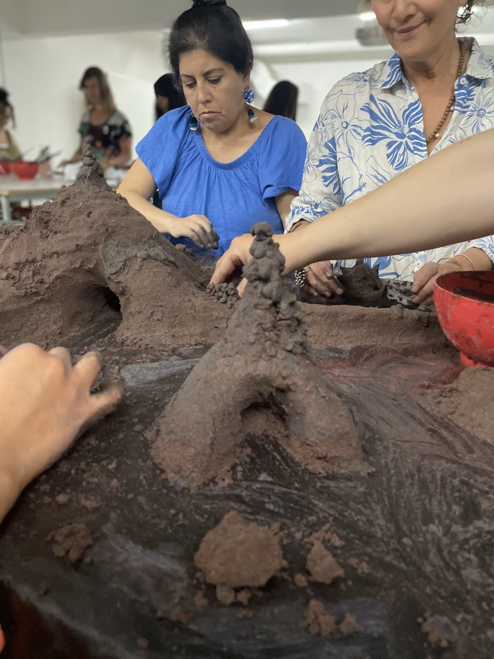 En este primer encuentro se enfatizó el sentido de comunidad a través del arte dentro de un espacio sensorial, en que se propició el contacto interpersonal y la vivencia de hacer en compañía de otros colegas. Al final de la actividad, facilitada por la profesora del Magister Francisca Onetto, se generó un espacio para compartir el sentir y el pensar emergentes respecto a la formación y profesión como arteterapeutas.