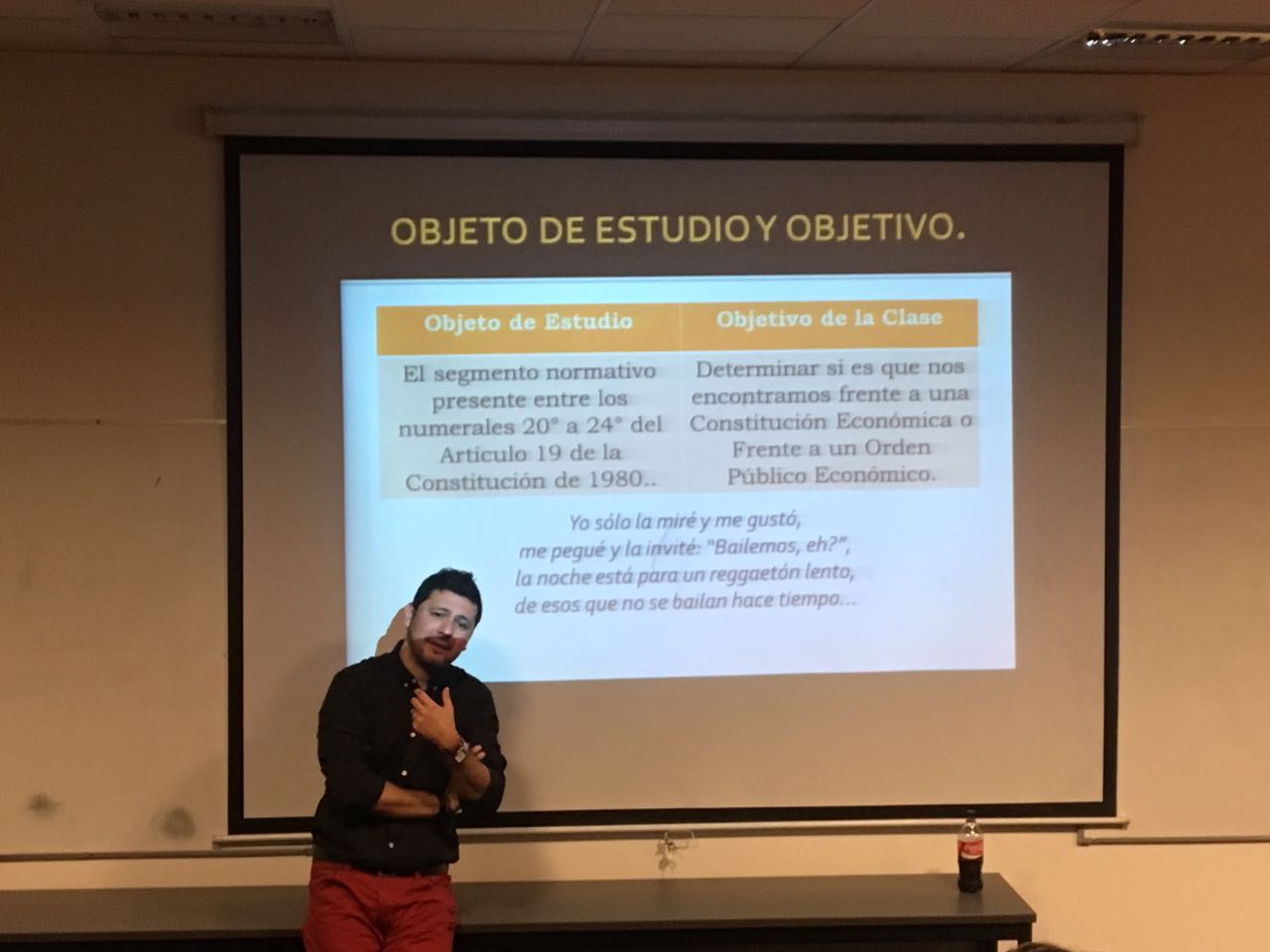 La temática abordada proviene de las investigaciones que el expositor desarrolla en torno a la dogmática de los Derechos Fundamentales, en perspectiva de Teoría del Derecho. “Orden Público Económico Vs. Constitución Económico” fue el reactivo propuesto por Núñez Leiva a efectos de motivar una discusión en torno a las consecuencias que en el razonamiento práctico producen los conceptos meta-jurídicos que orientan la interpretación jurídica. La hipótesis planteada por el docente consistió en que de conformidad a su origen y estructura las disposiciones constitucionales a las que tradicionalmente se atribuye un contenido económico se aproximan más a la noción de Orden Público Económico.