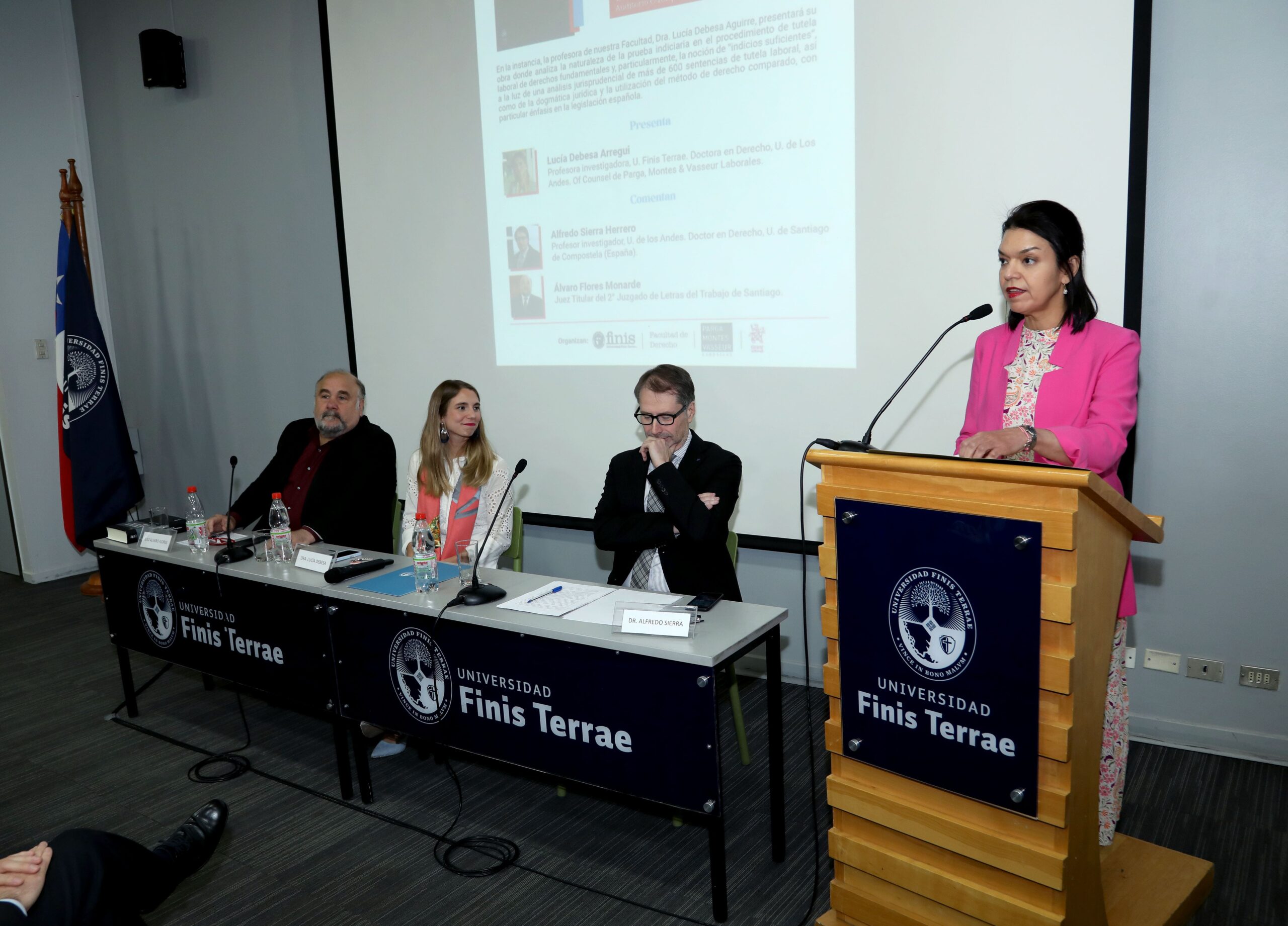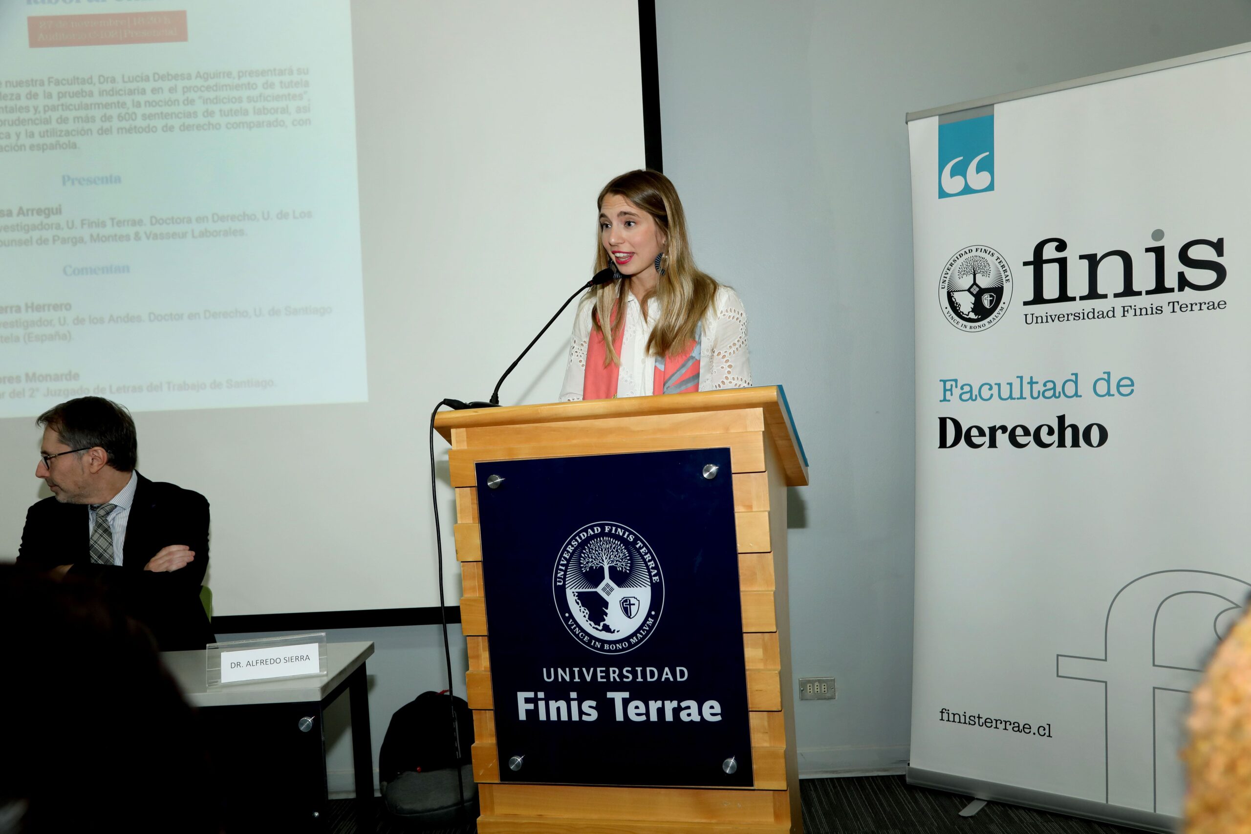 En un auditorio repleto de abogados laboralistas, académicos y estudiantes de nuestra Facultad, además de amigos y familiares de la autora, se realizó el lanzamiento de La prueba indiciaria en el procedimiento de tutela laboral chileno, primer libro de la profesora de Derecho Laboral de nuestra Facultad y of counsel en Parga, Montes & Vasseur, Laborales, Dra. Lucía Debesa Arregui, texto que acaba de ser publicado por la editorial Tirant lo Blanch.