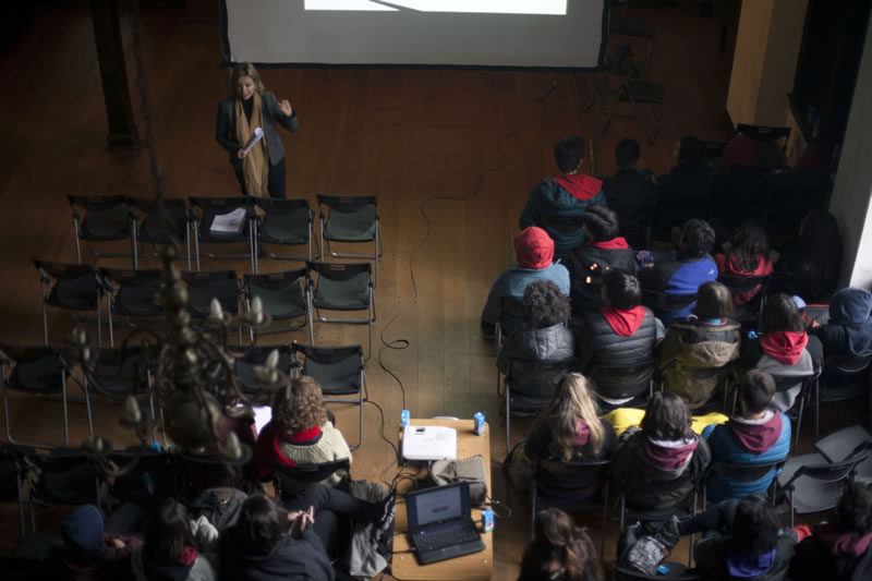 Las académicas de Derecho Andrea Lucas, de la Universidad Finis Terrae, y Liliana Galdámez, de la Universidad de Chile, difundieron sus investigaciones en torno a materias medioambientales en una jornada con estudiantes del Liceo Experimental Manuel de Salas, oportunidad en que los alumnos de tercero y cuarto medio -que optaron por la rama de ciencias en su plan de formación- pudieron compartir sus propias reflexiones y hacer consultas a las expertas.