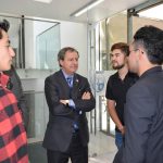 En su arribo a las instalaciones de la Universidad, el ministro de Educación, Gerardo Varela, se dio el tiempo de visitar la exposición de Picasso junto a autoridades de la universidad y de sacarse fotografías con alumnos, quienes se acercaron espontáneamente al secretario de Estado.