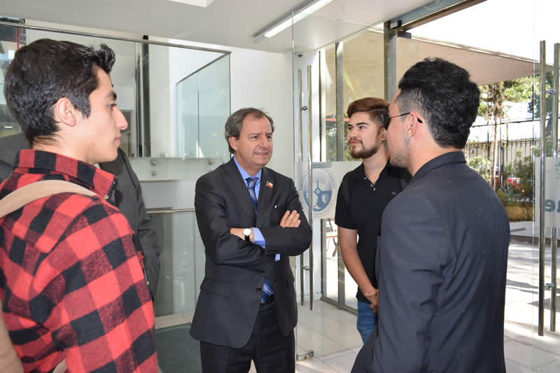Luego, el ministro se trasladó hasta el Teatro de la Universidad lugar donde presenció el discurso del rector Cristian Nazer, para finalmente dirigir unas palabras a la Comunidad Universitaria, destacando el rol de las instituciones privadas en el país.