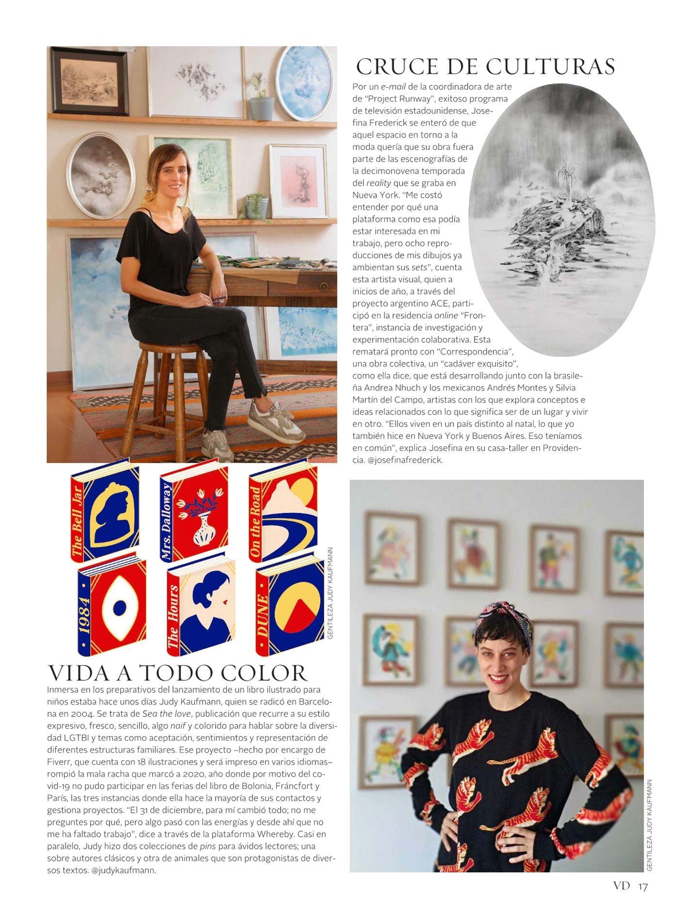 La Revista Vivienda y Decoración de Diario El Mercurio, destacó a la egresada de la Escuela de Artes Finis Terrae, Josefina Frederick, junto a un grupo de artistas chilenas que están logrando perfilarse como protagonistas de la escena cultural nacional e internacional pese al aislamiento y la presencia del formato virtual.