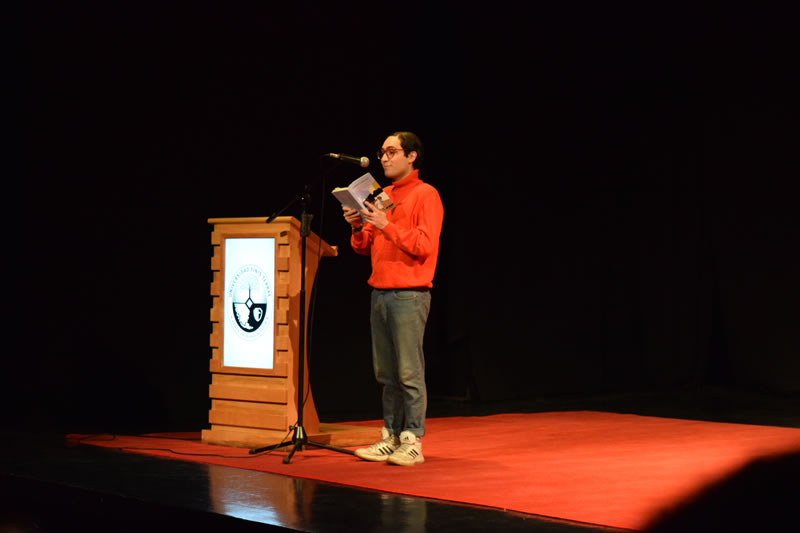 Al comienzo del evento se dirigió a los presentes el vicerrector de Desarrollo y Comunicaciones de la Universidad, Oscar Sastré, y posteriormente la directora editorial de Penguin Random House, Melanie Jösch, quienes dieron una cordial bienvenida a todo el público presente y destacaron la trayectoria del autor.