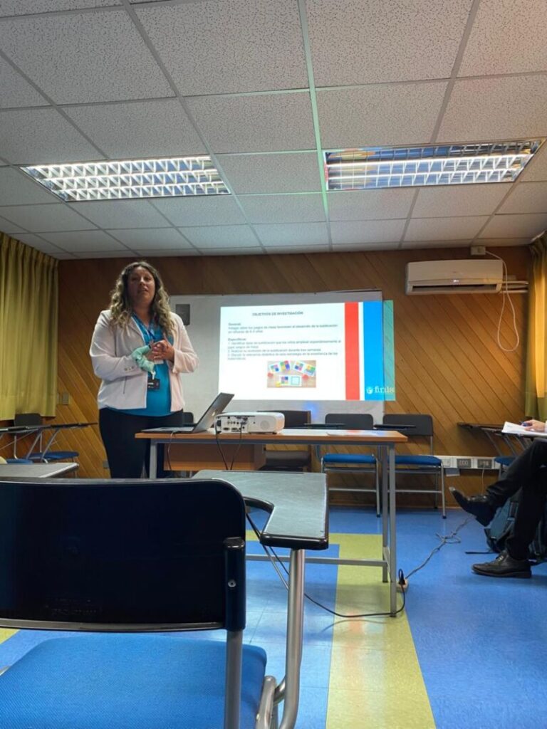 La académica presentó resultados de una investigación exploratoria desarrollada junto a una estudiante de tesis, titulada “Juegos de mesa como estrategia para el desarrollo de la subitización en Educación Parvularia”.