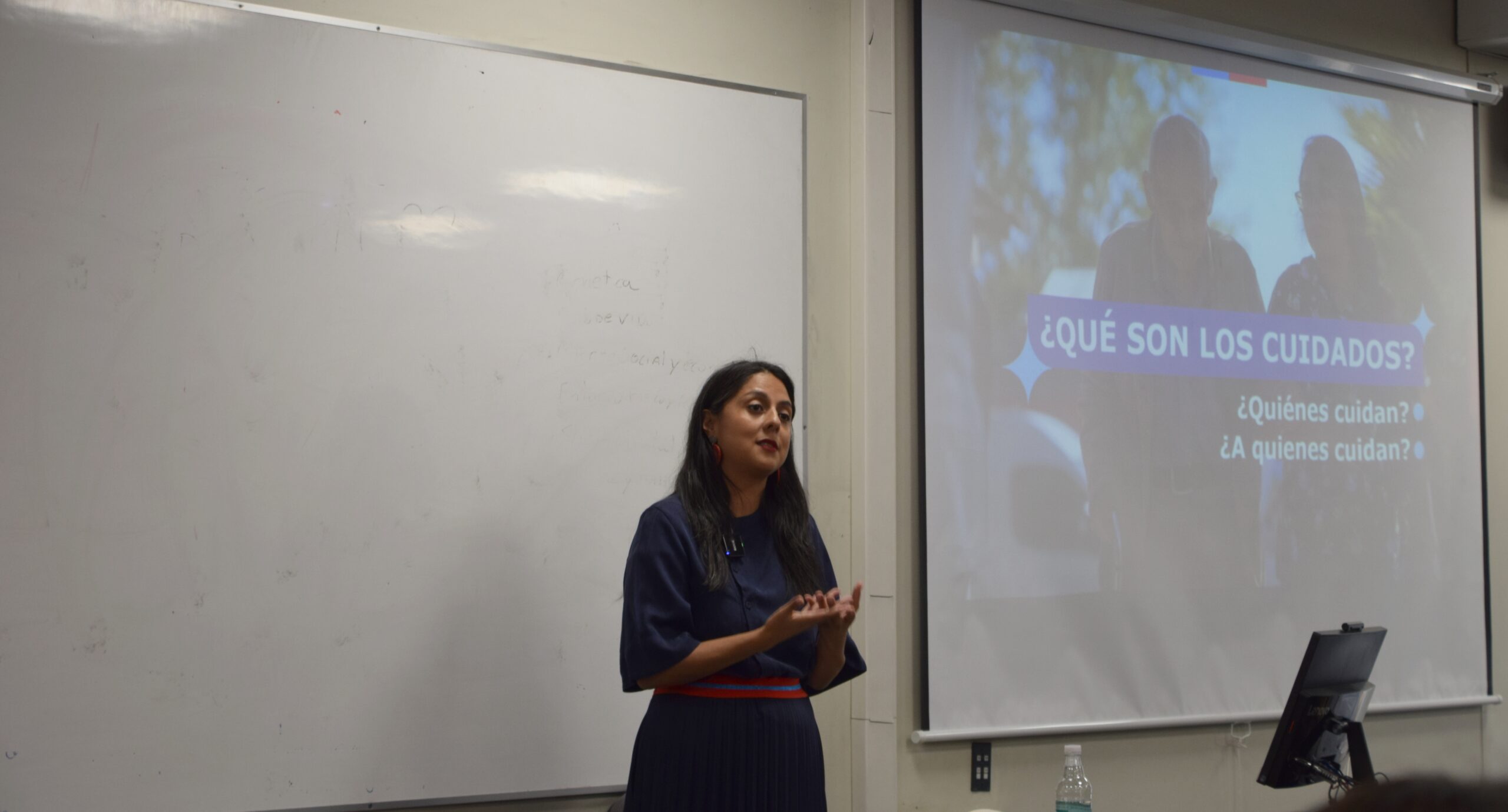 La autoridad llegó hasta la casa de estudios para explicar en qué consiste el nuevo Sistema Nacional de Cuidados y cómo funciona la red de Chile cuida, una estructura que conecta instituciones, programas y servicios para ofrecer apoyos y cuidados a personas que reciben asistencia en actividades diarias y a las personas cuidadoras. Esta red está diseñada para abordar de manera integral las necesidades del cuidado en Chile, integrando los esfuerzos de instituciones públicas, privadas, de la sociedad civil y comunitarias.