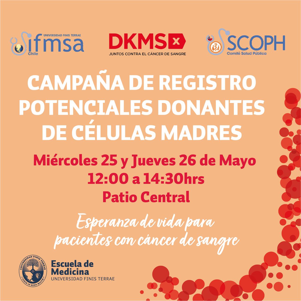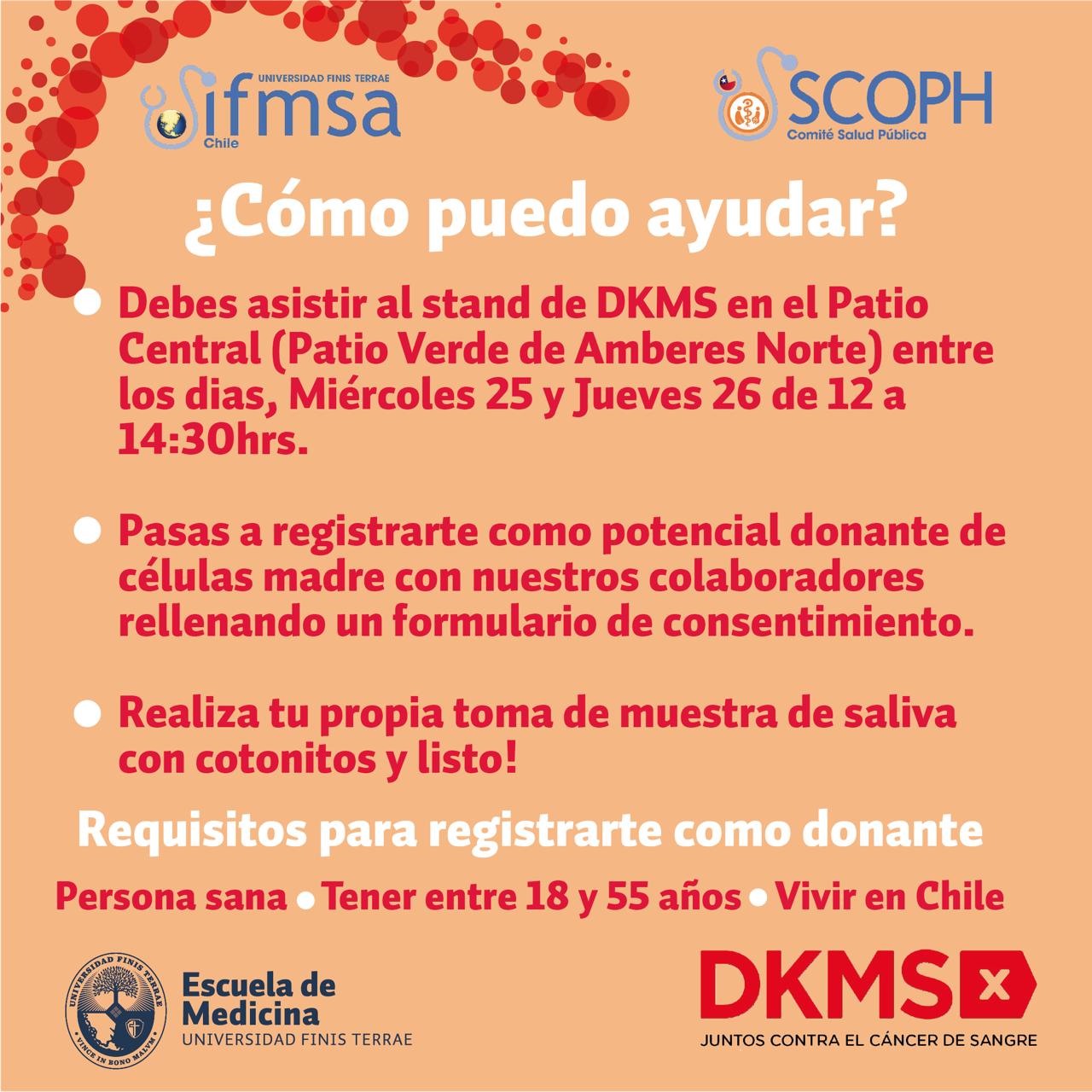 Este miércoles 25 y jueves 26 de mayo de 2022, entre las 12:00 a 14:30 horas, se instalará un stand de DKMS en el Patio Amberes Norte de Casa Central, en el cual pueden: