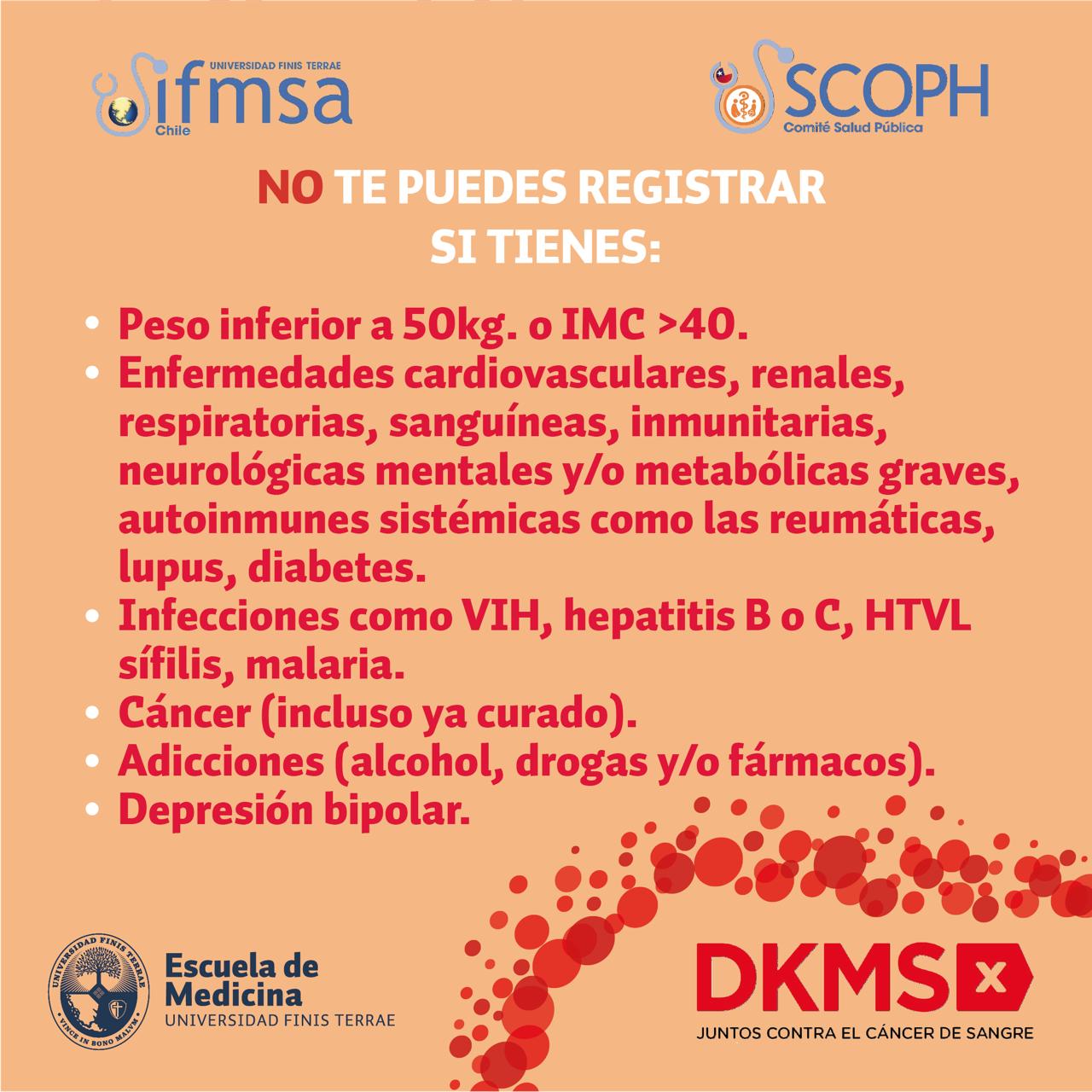 – No tener enfermedades cardiovasculares, renales, respiratorias, sanguíneas, inmunitarias, neurológicas mentales y/o metabólicas graves, autoinmunes sistémicas como las reumáticas, lupus o diabetes.