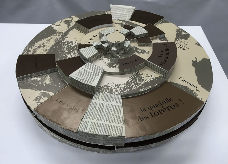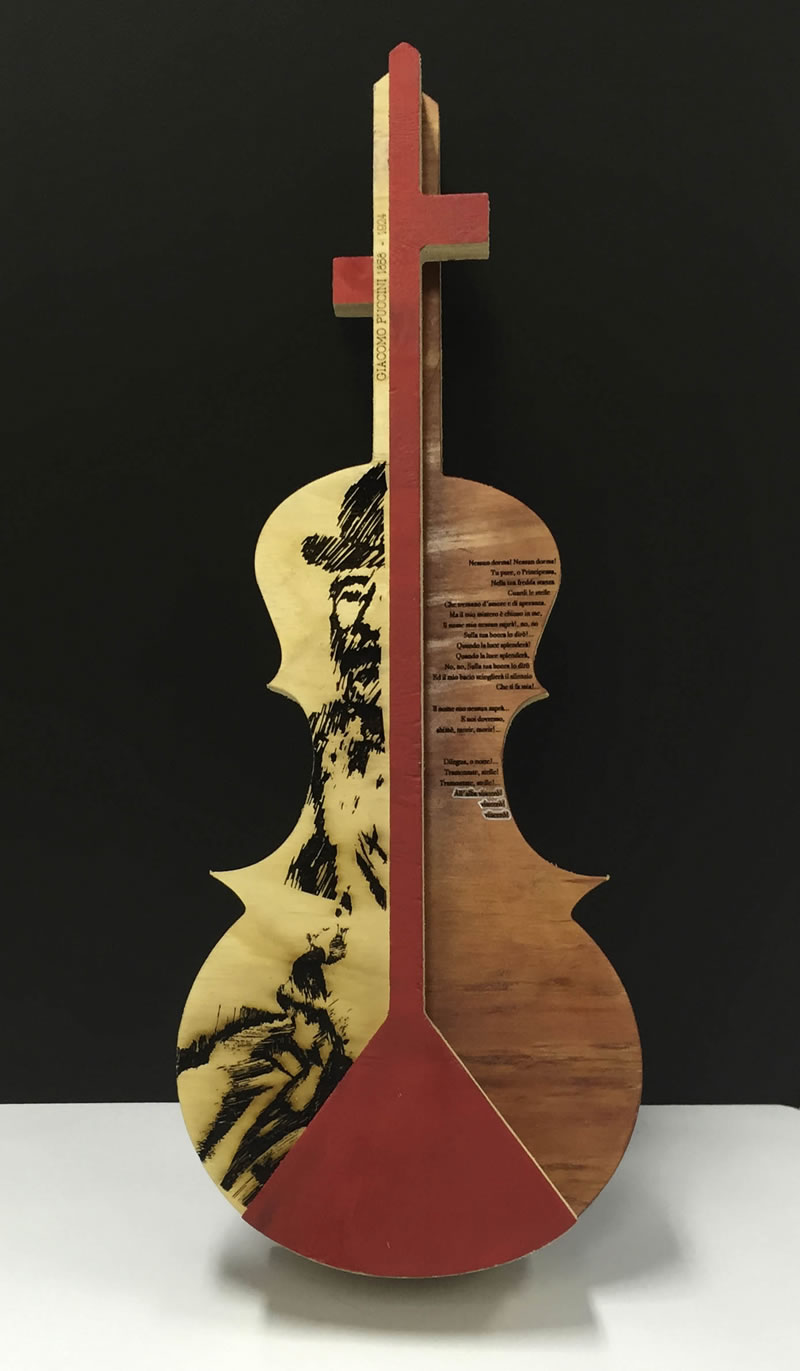 A partir de esto, aplicaron un concepto y diseño a un instrumento específico de la orquesta, abstrayéndolo e interpretándolo en base a las proporciones áureas, generando así una propuesta de diseño que toma la forma de una pieza gráfica tridimensional experimental que revela el concepto elegido, la biografía del compositor y el relato de un acto especifico de una ópera particular.