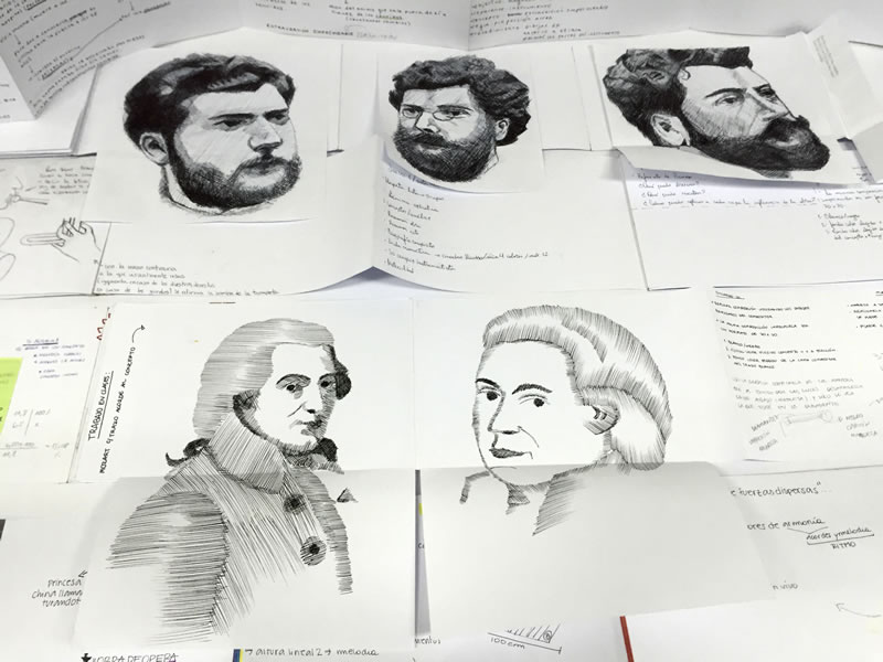 El Taller II de Diseño Gráfico, dirigido por la docente Trinidad Díaz, trabajó con sus alumnos en un fascinante estudio sobre las posibilidades de graficar una suerte de visualización de la música, a partir del estudio de la Ópera y la relación Instrumento musical/pieza gráfica.